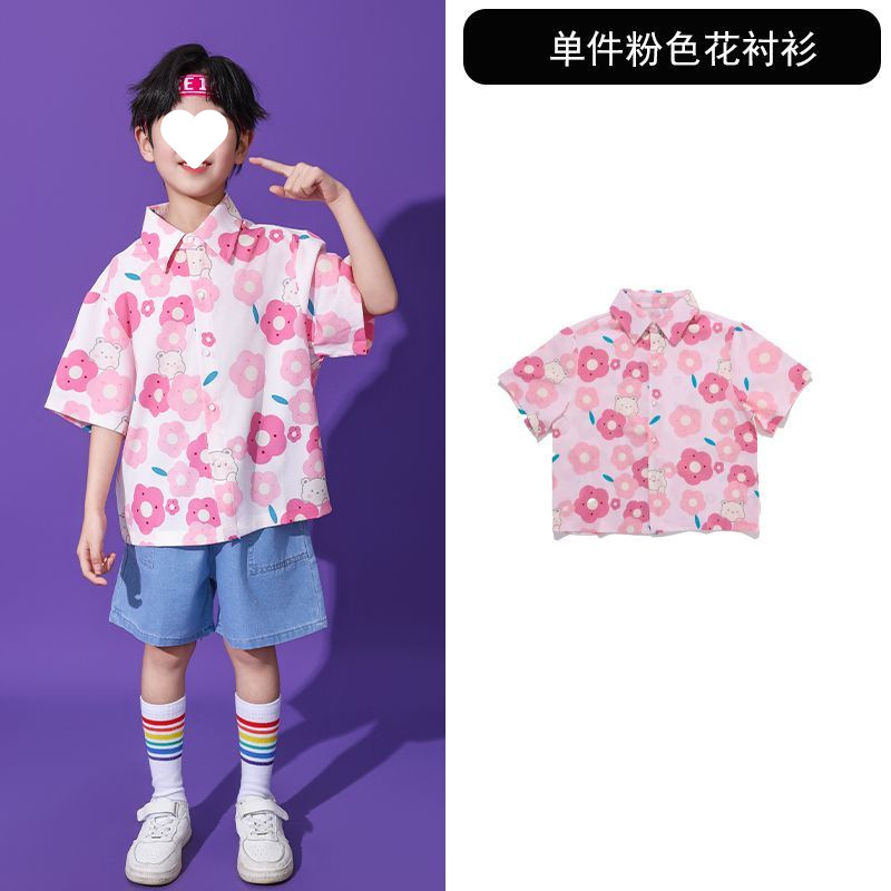 • 핑크 트렌디 플로럴 셔츠 반팔 [남녀 동일 스타일]