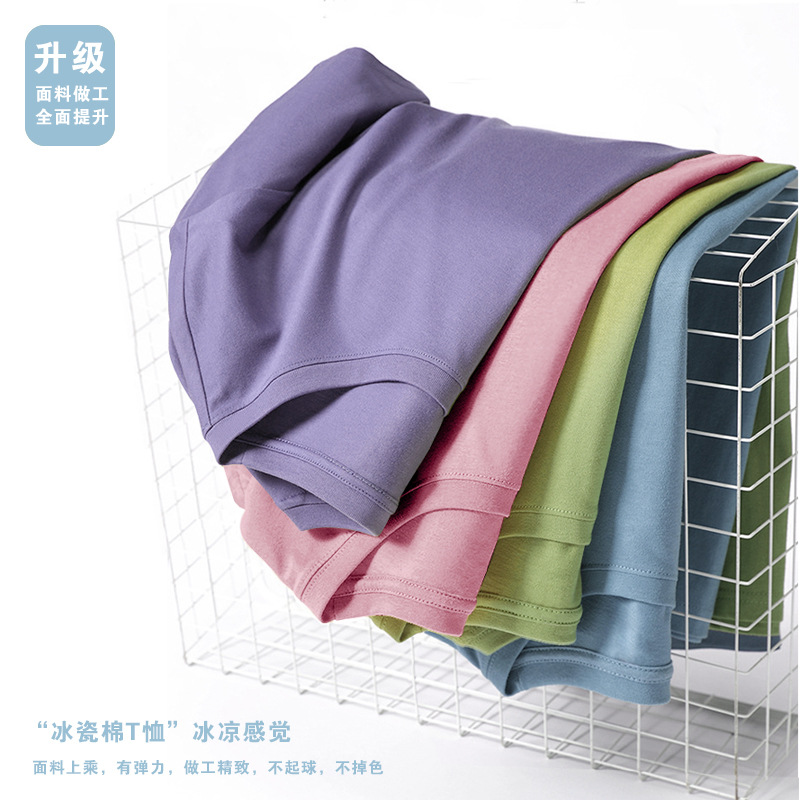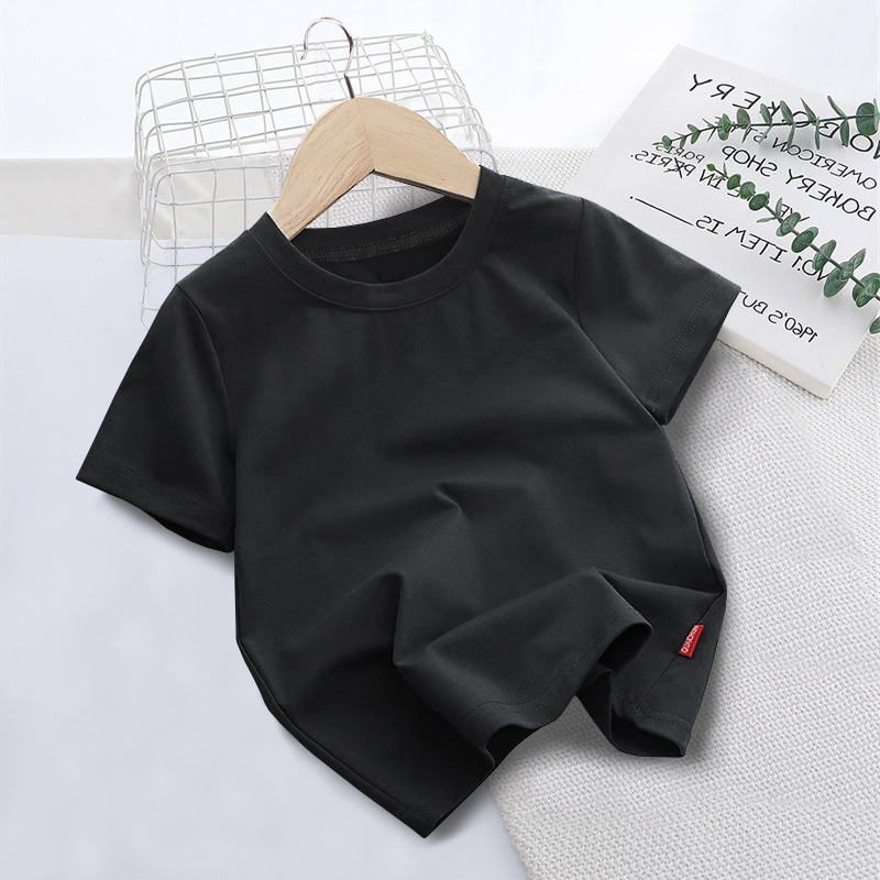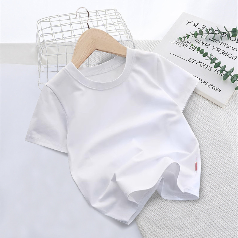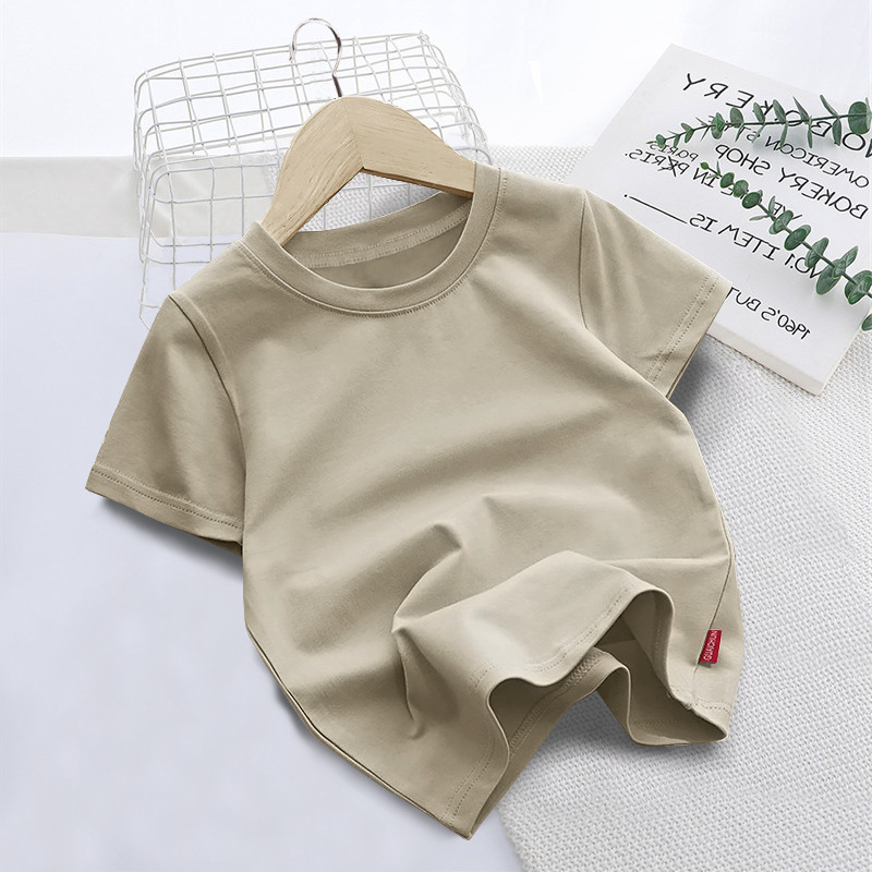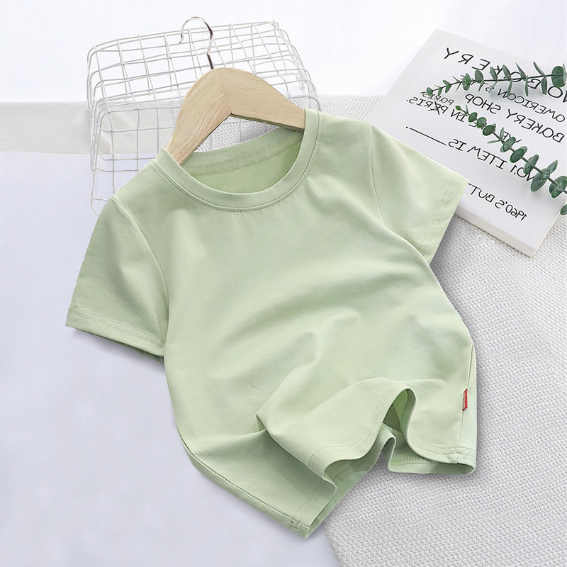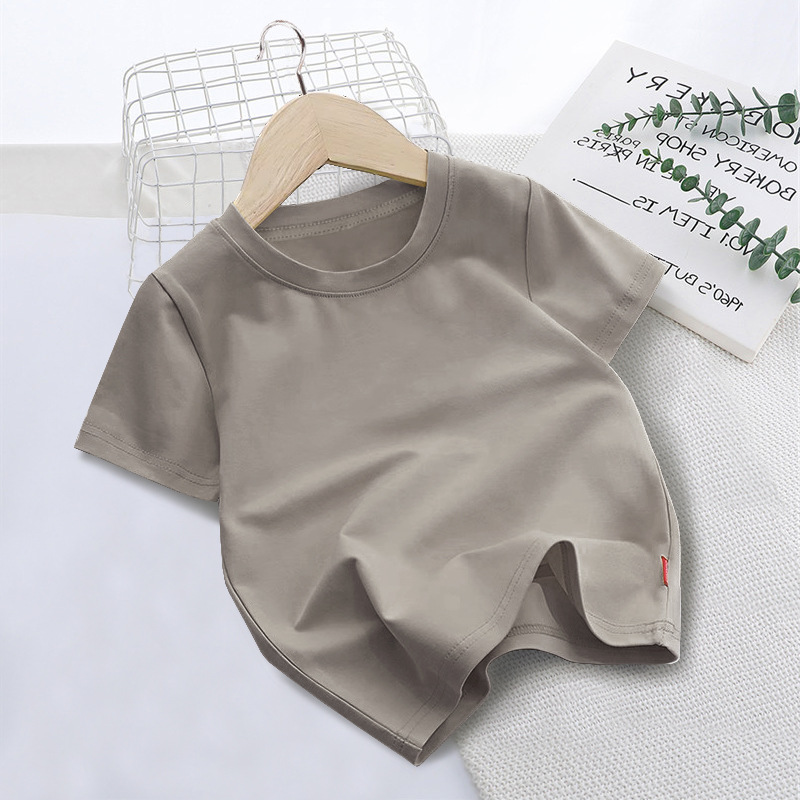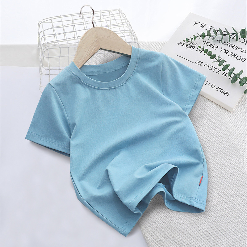 국경 간 대외 무역 한국 아동복 단색 짧은 소매 부드러운 남성과 여성의 아기 둥근 목 반 소매 티셔츠 인쇄 로고 클래스 옷 여름스토어 가기