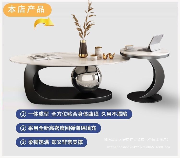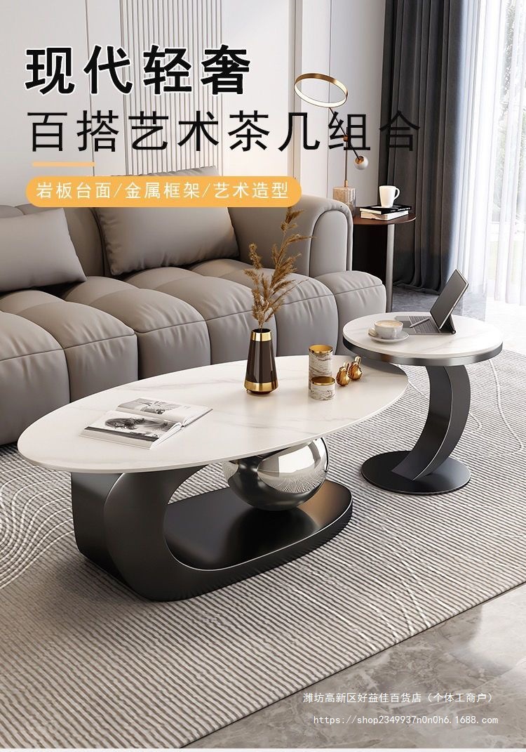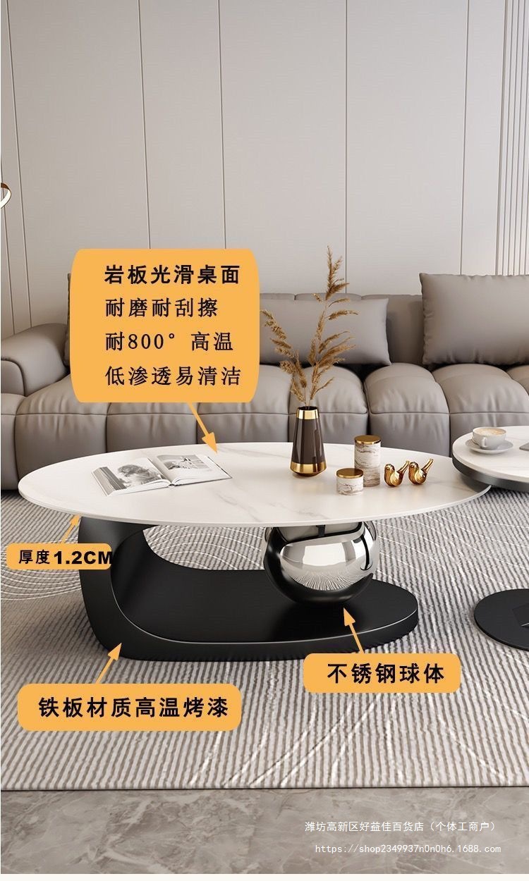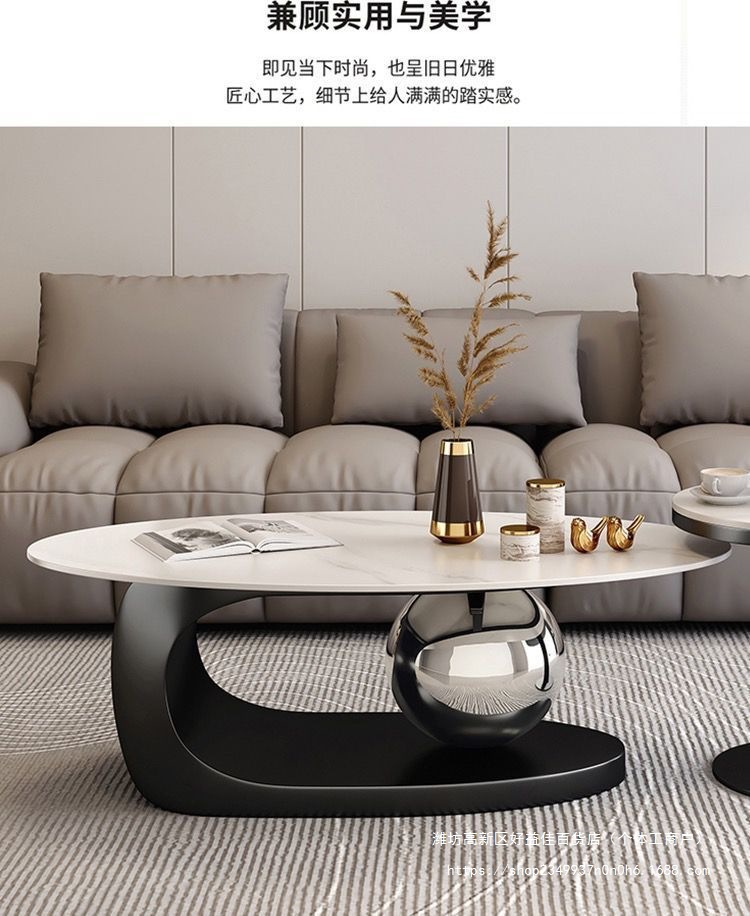 록 플레이트 타원형 커피 테이블 빛 고급 현대 거실 홈 미니멀리스트 작은 아파트 새로운 창조적 인 인터넷 연예인 커피 테이블 테이블스토어 가기