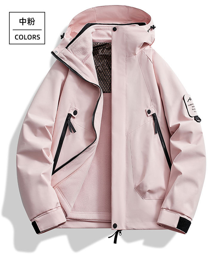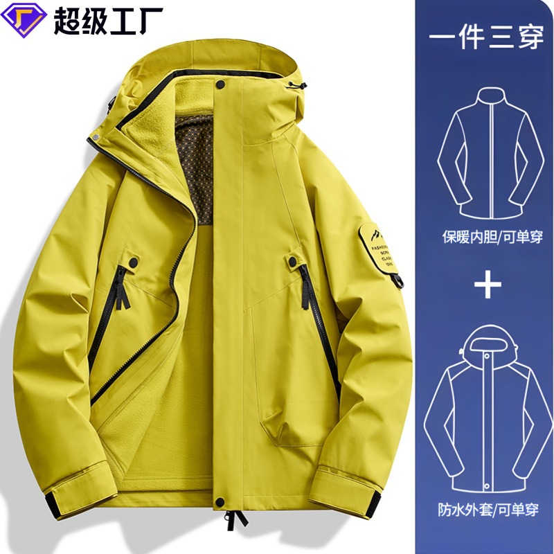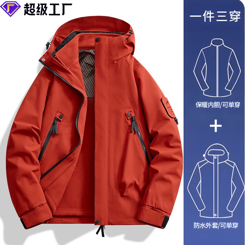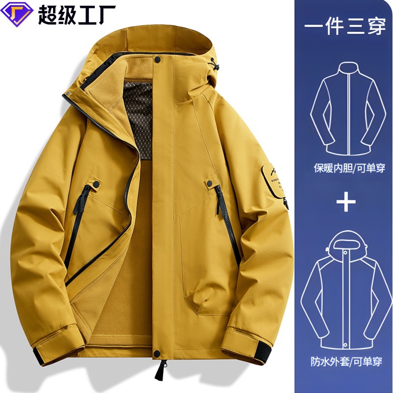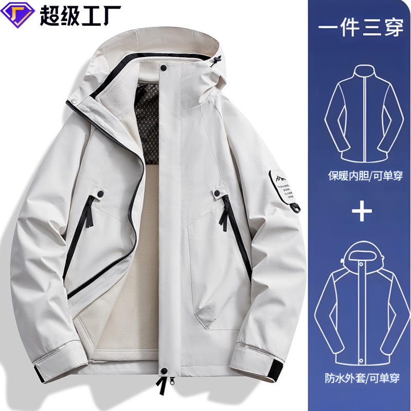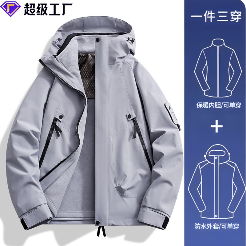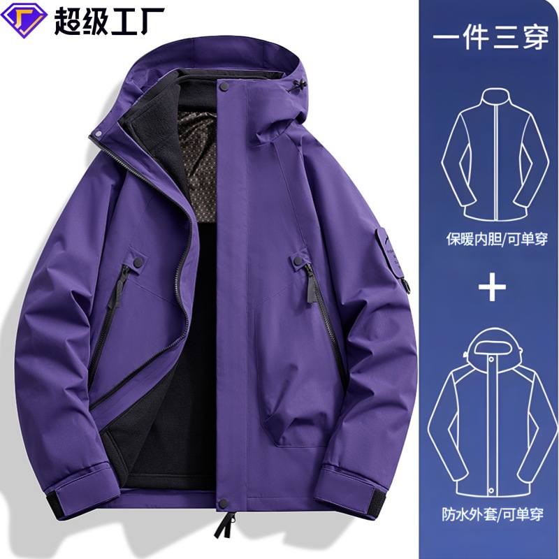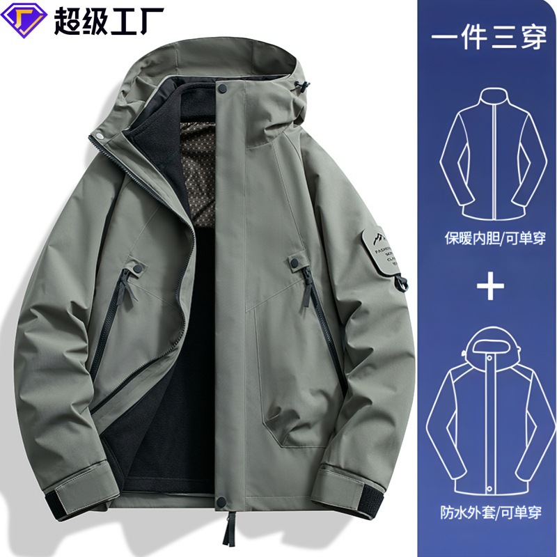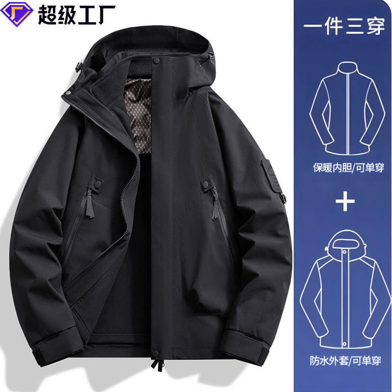 충전 옷 3 대 1 물 튀는 증거 여성의 야외 방풍 따뜻한 옷 단색 하드 쉘 작업 의류 후드 커플 남성용 재킷