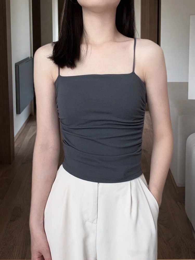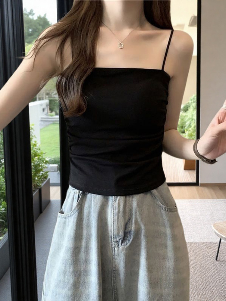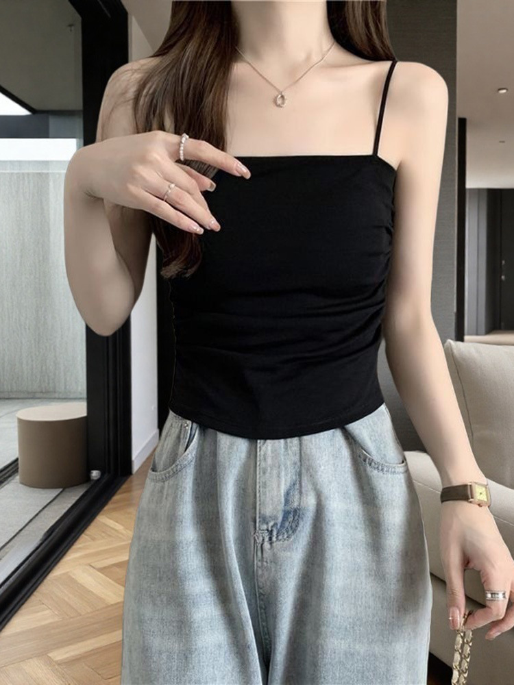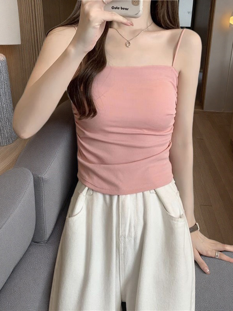 작은 카미솔 여성 내부 조끼 가슴 패드 기반 아름다운 뒷면 디자인 틈새 봄과 여름 민소매 튜브 탑스토어 가기