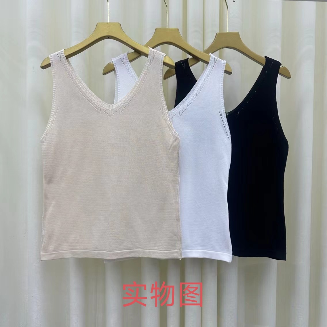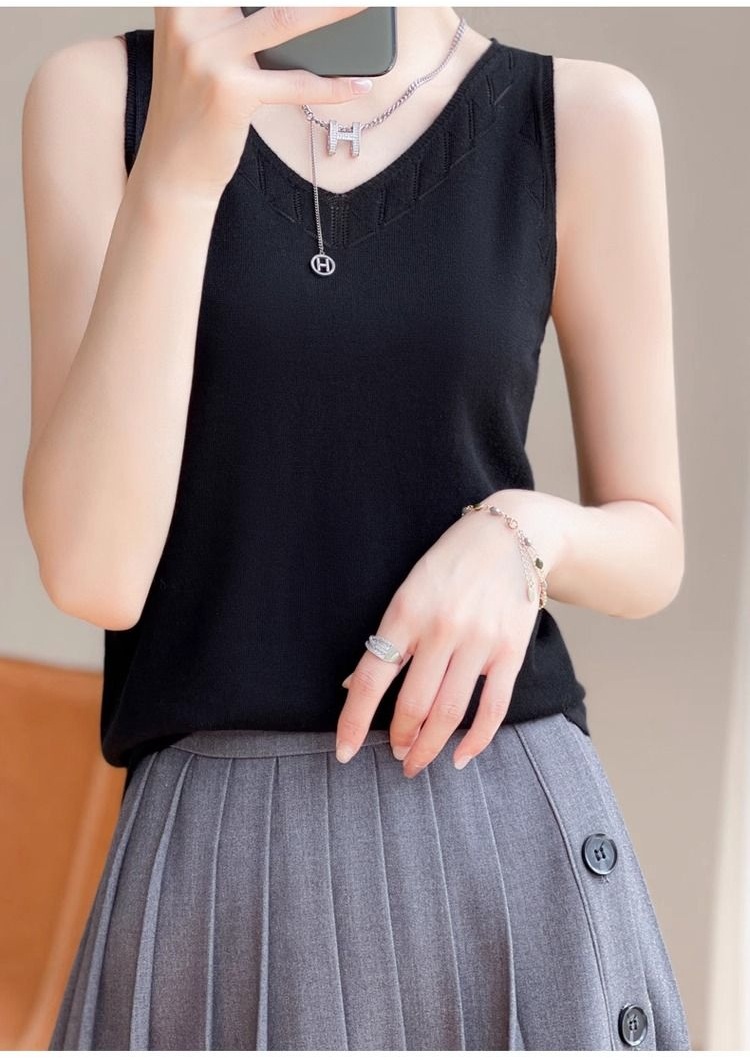 2025 새로운 여름 캐미솔 여성의 단색 v-neck 민소매 니트 바닥 셔츠 속이 빈 자카드스토어 가기