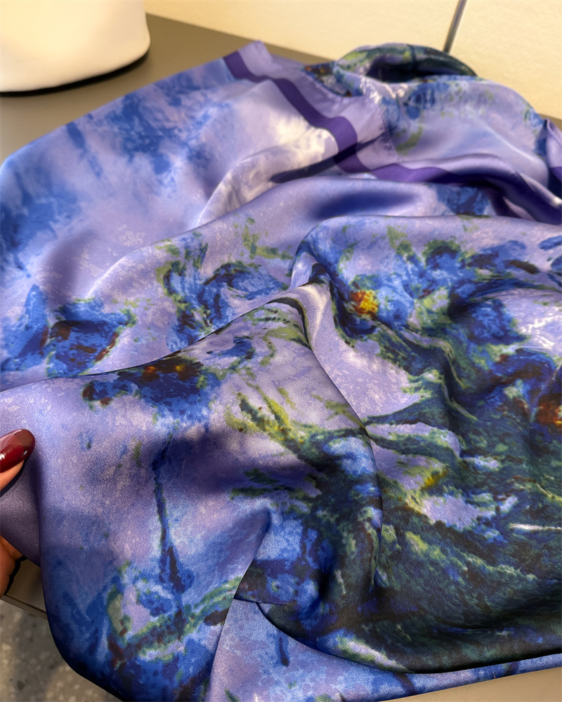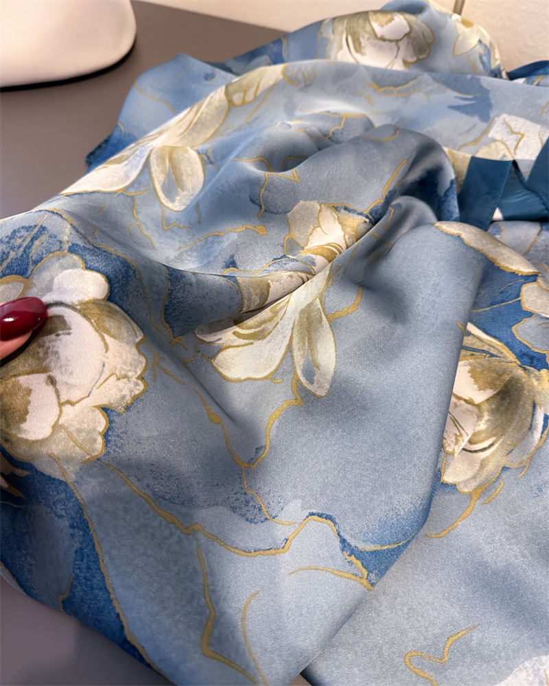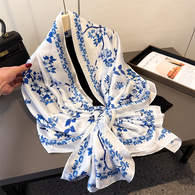 봄과 여름 얇은 인쇄 시뮬레이션 실키 브로케이드 선 스크린 우아한 운율 꽃 스카프 긴 스카프 목도리 다목적 스카프스토어 가기