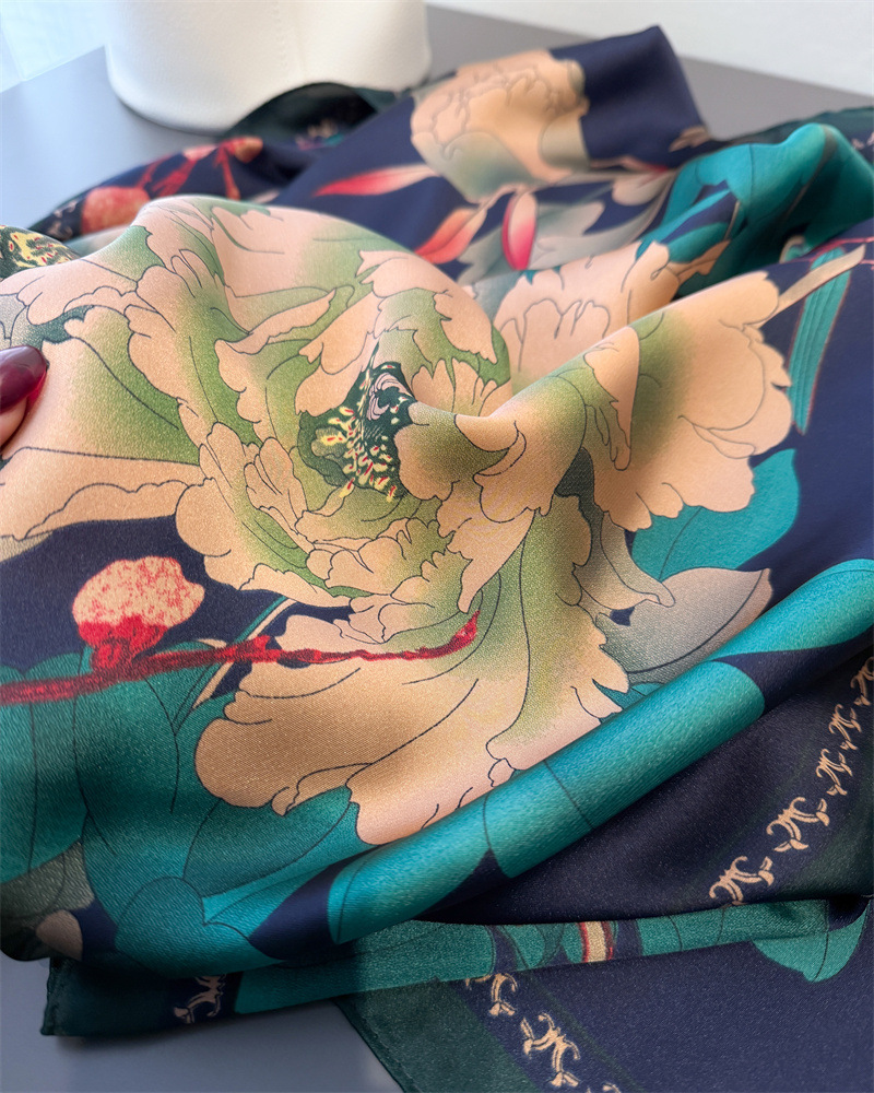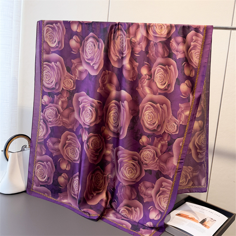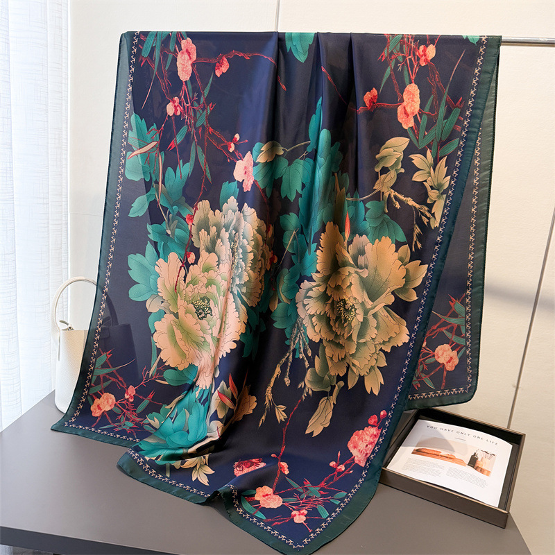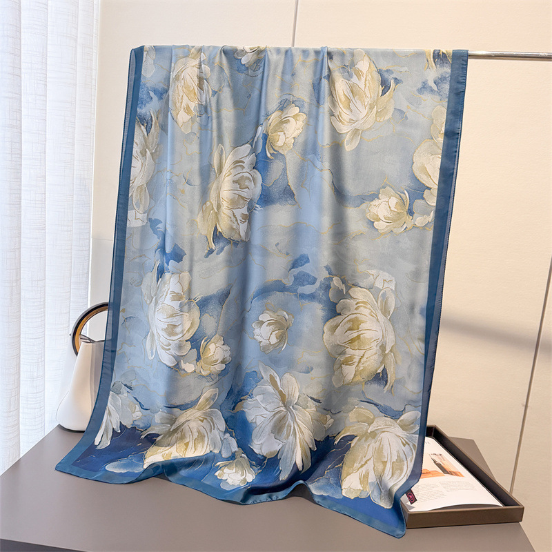 봄과 여름 얇은 인쇄 시뮬레이션 실키 브로케이드 선 스크린 우아한 운율 꽃 스카프 긴 스카프 목도리 다목적 스카프