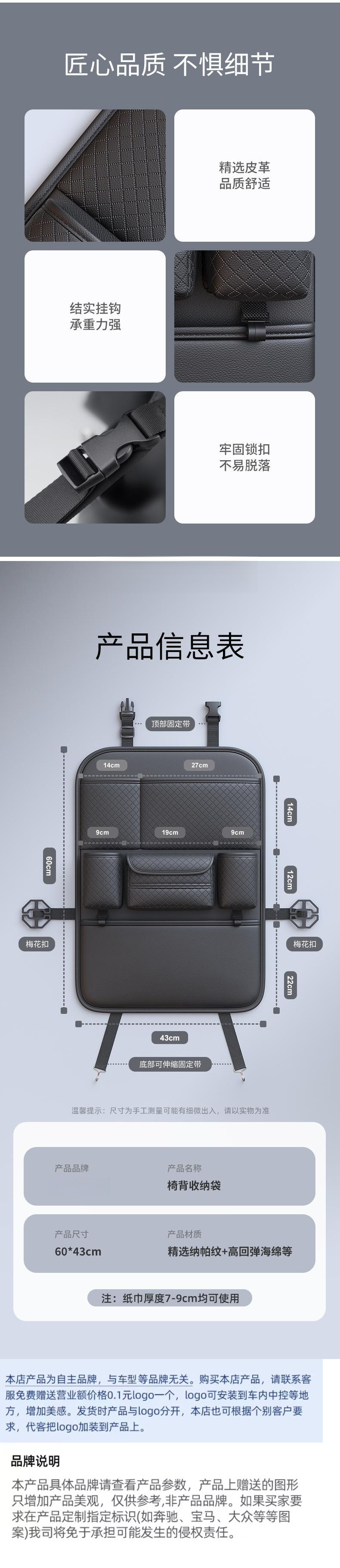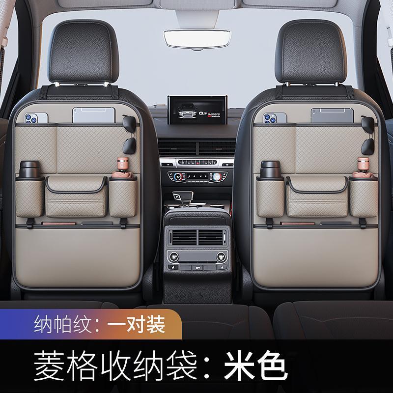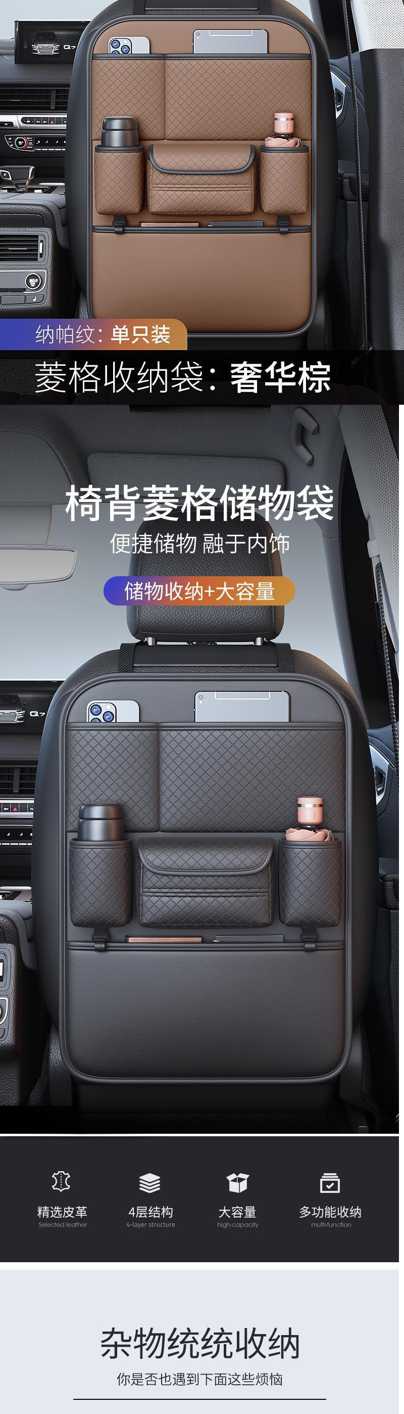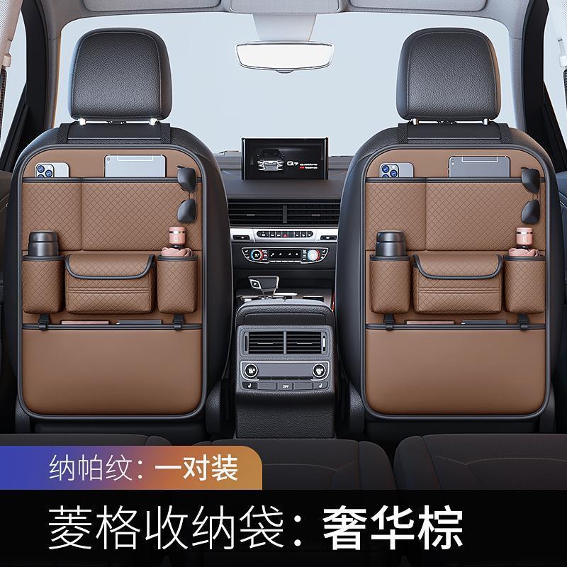 • [럭셔리 브라운-다이아몬드 패턴 페어] 의자 등받이 수납가방은 방수, 얼룩 방지 기능이 있습니다.