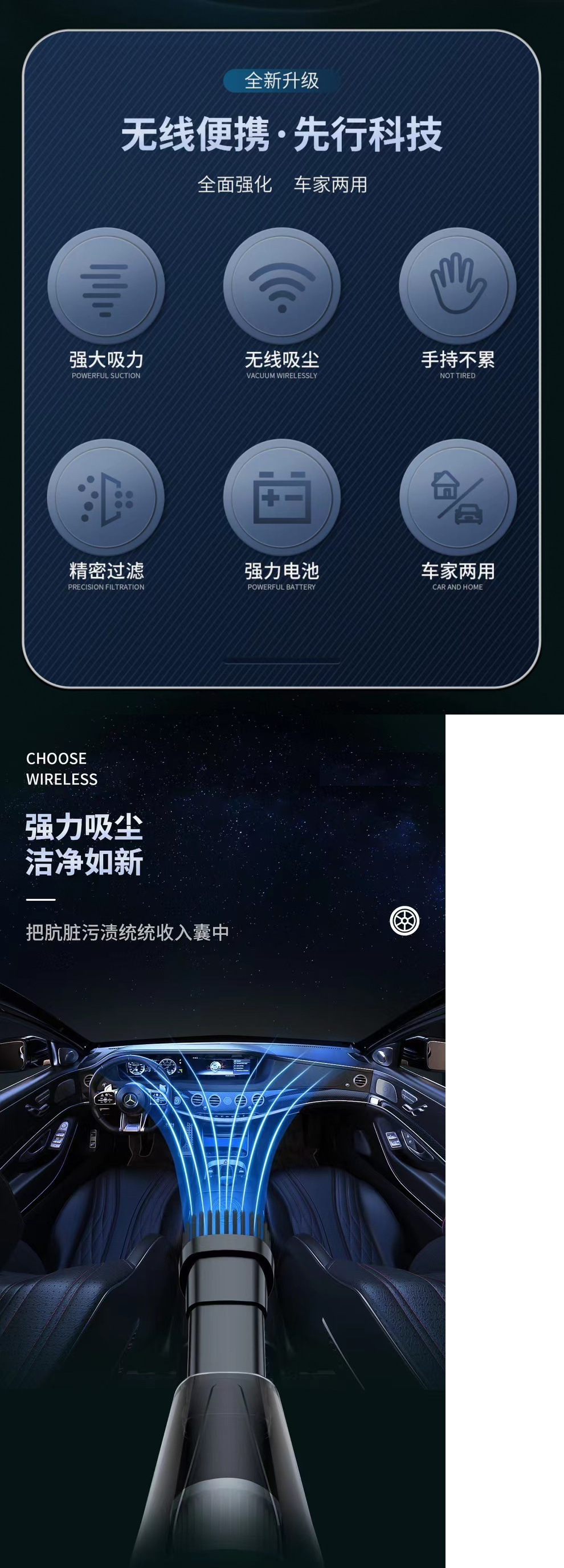 자동차 무선 진공 청소기 강력한 높은 전원 높은 흡입 미니 휴대용 자동차 진공 청소기 가정용 실내 소형