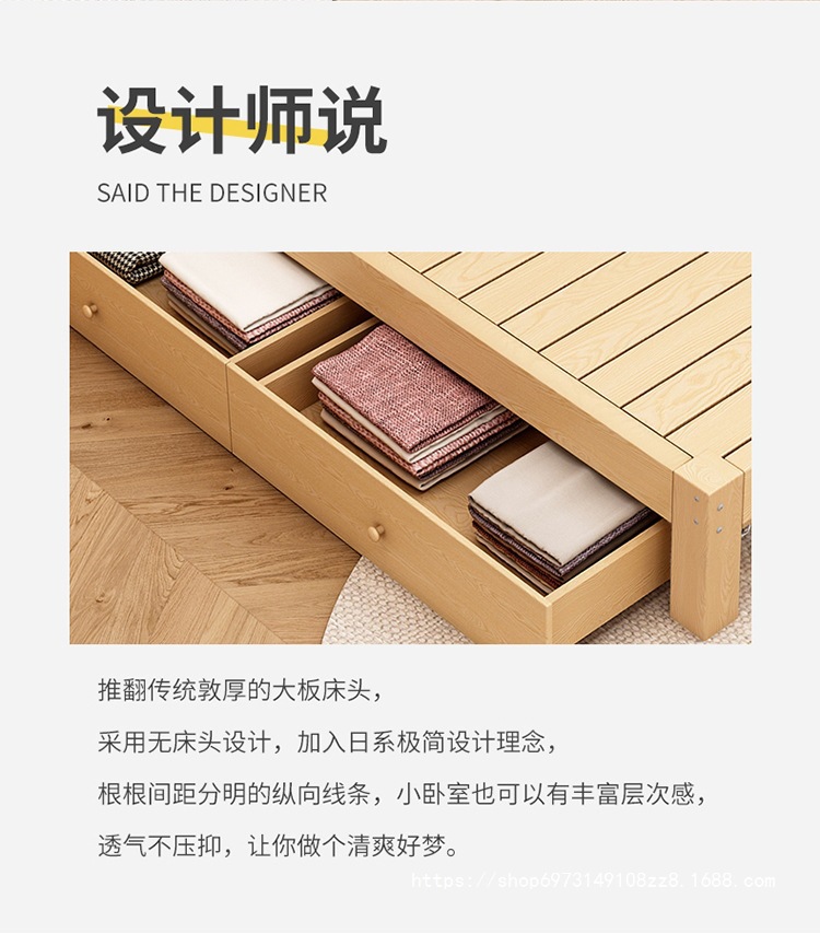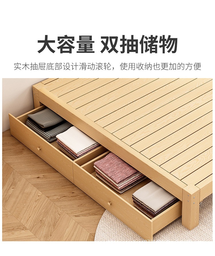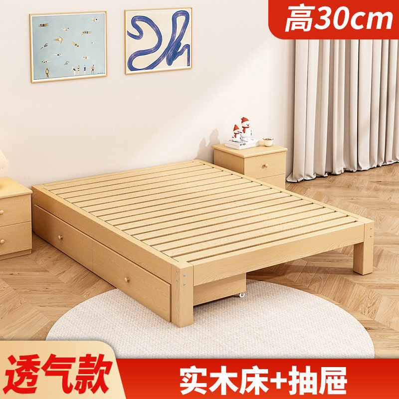 • 통기성이 뛰어난 30CM 원목 침대 + 더블 서랍, 경제적이고 저렴한 모델