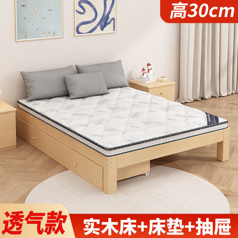 • 통기성이 뛰어난 30CM 원목 침대 + 서랍 + 매트리스, 경제적이고 저렴한 가격