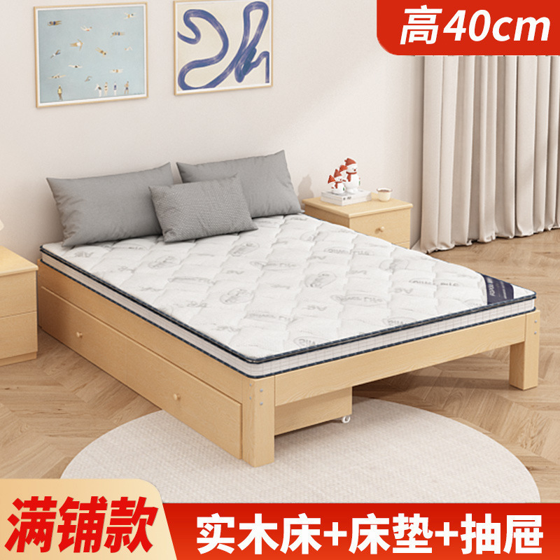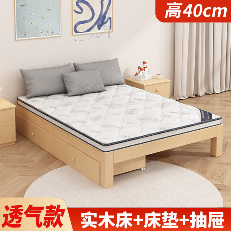 • 40CM 높이의 원목 침대 + 이중 서랍 + 매트리스, 통기성 침대 보드