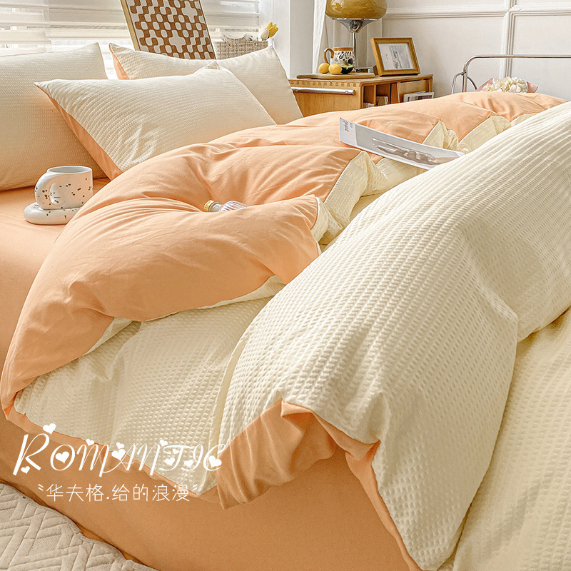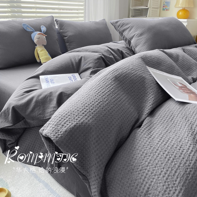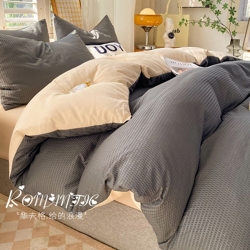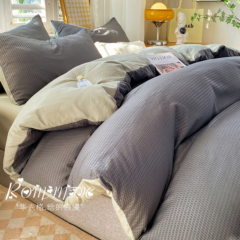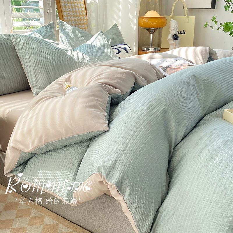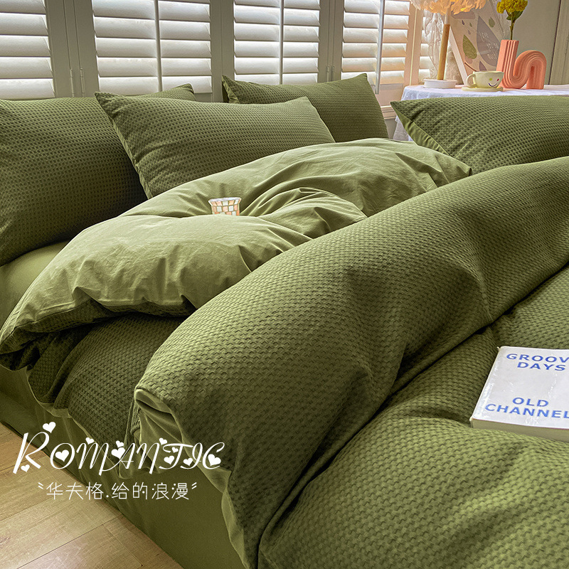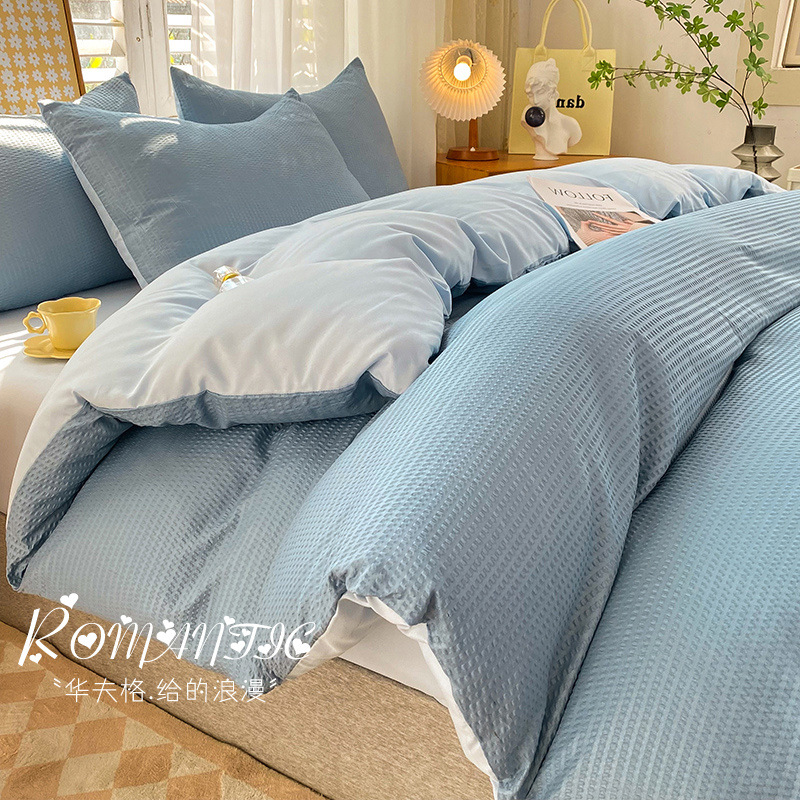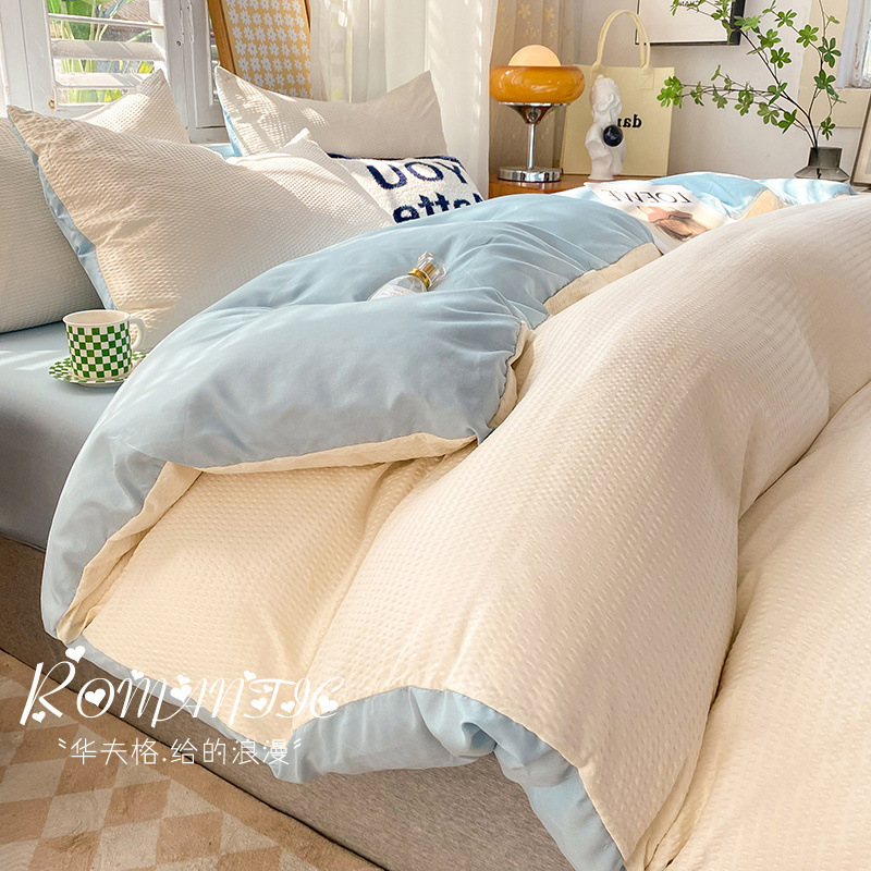 와플 4 조각 침구 라이트 럭셔리 퀼트 커버 기숙사 침대 시트 3 조각 세트 비 스티커 퀼트 커버스토어 가기