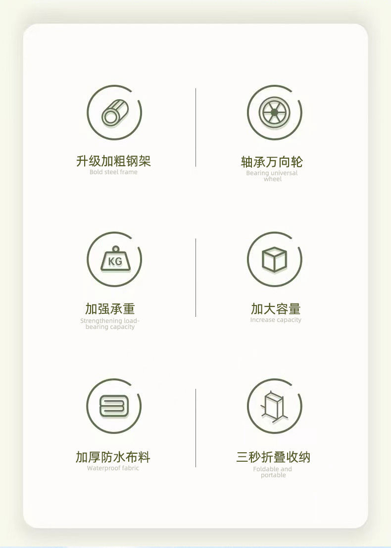 • 카드 그린 [이중 두꺼운 옥스포드 천] - 상단 구성 / 10inch 탱크 휠 / 이중 브레이크 + 강화된 나뭇결 테이블
