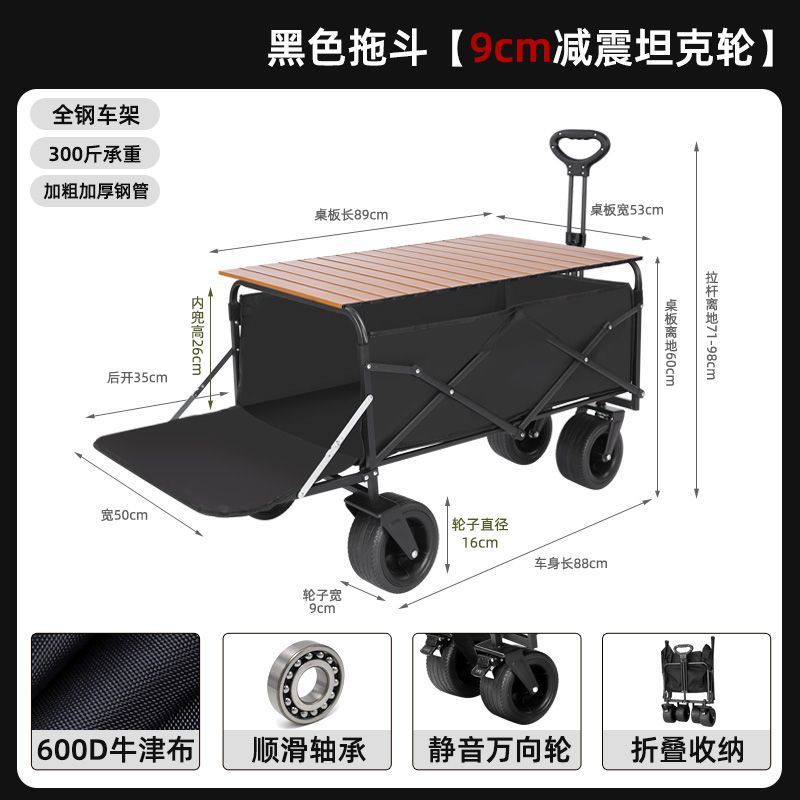 캠핑 스톨 자동차 캠핑 카트 접이식 야외 핸드 푸시 피크닉 자동차 휴대용 캠프 트레일러 풀 로드 다기능스토어 가기