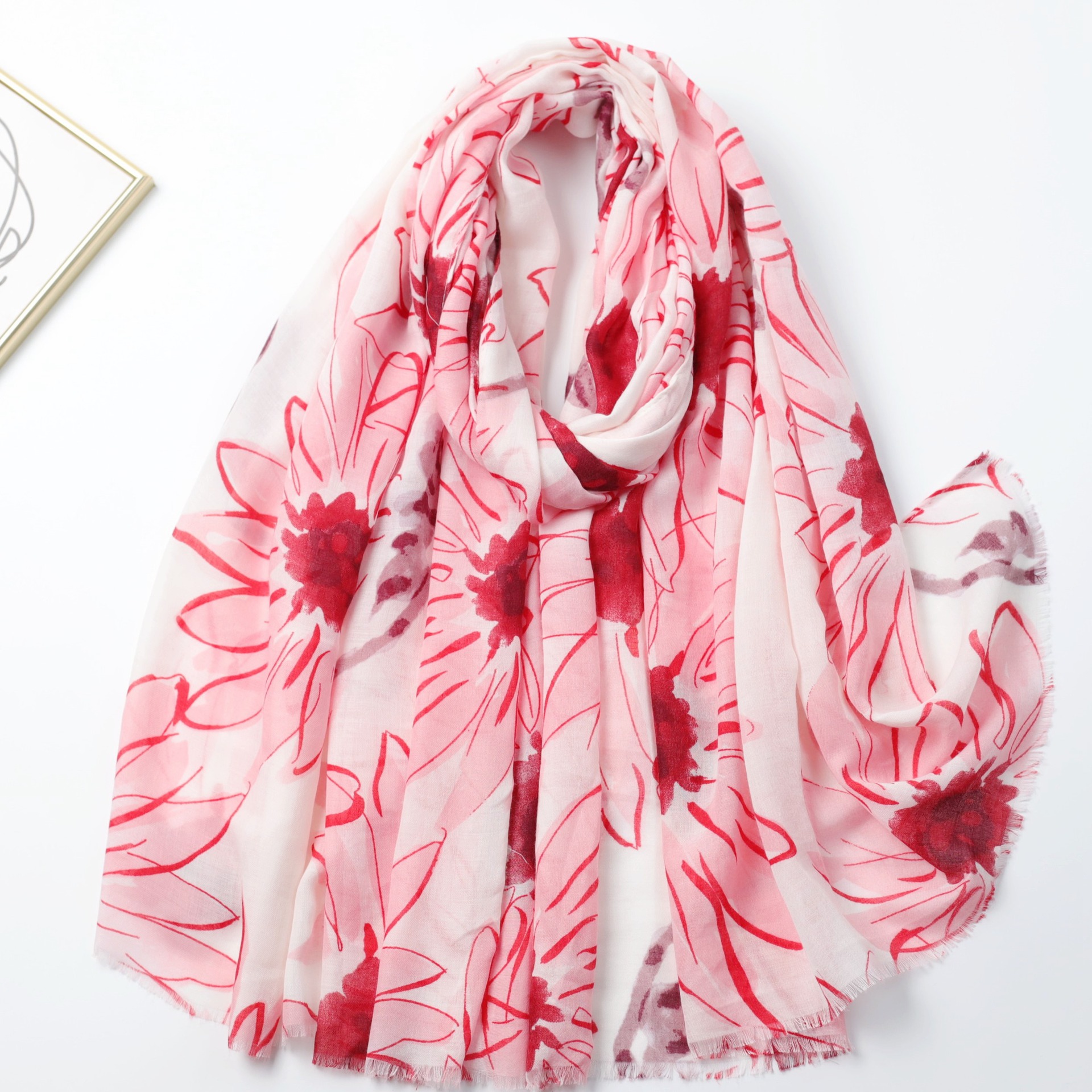 데이지 새틴 코튼 인쇄 긴 수건 공장 판매 대외 무역 국경 라이브 여행 휴가 선 스크린 따뜻한 여성의 목도리 얇은스토어 가기