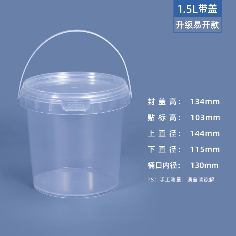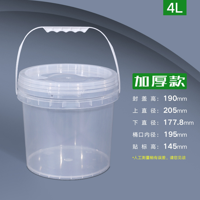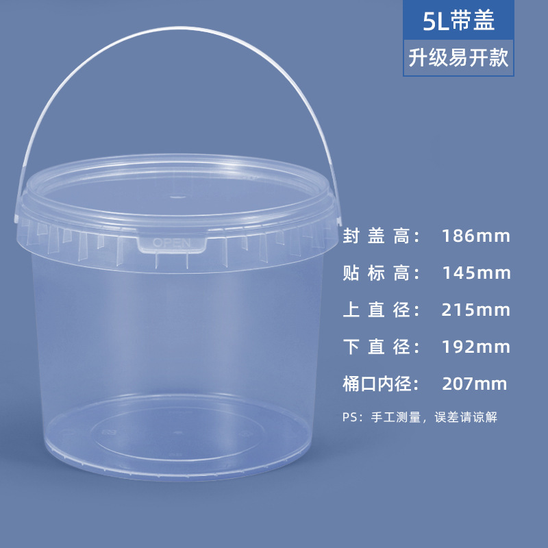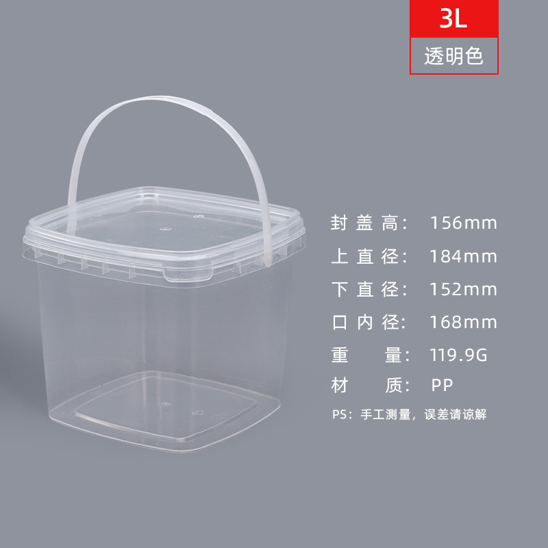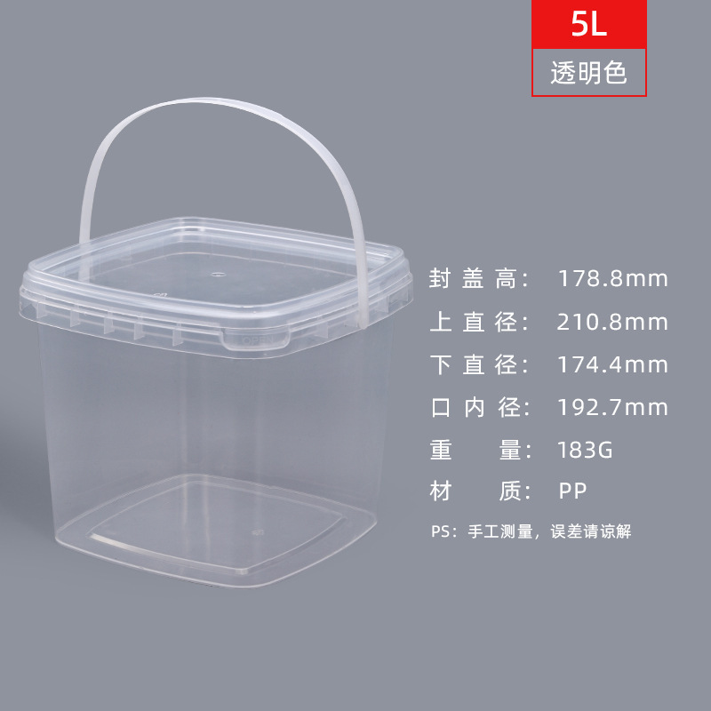 식품 등급 5L 플라스틱 버킷 고온 저항하는 투명 포장 버킷 핫 스프 밀봉 테이크 아웃 버킷 가정용 스토리지 버킷 버킷