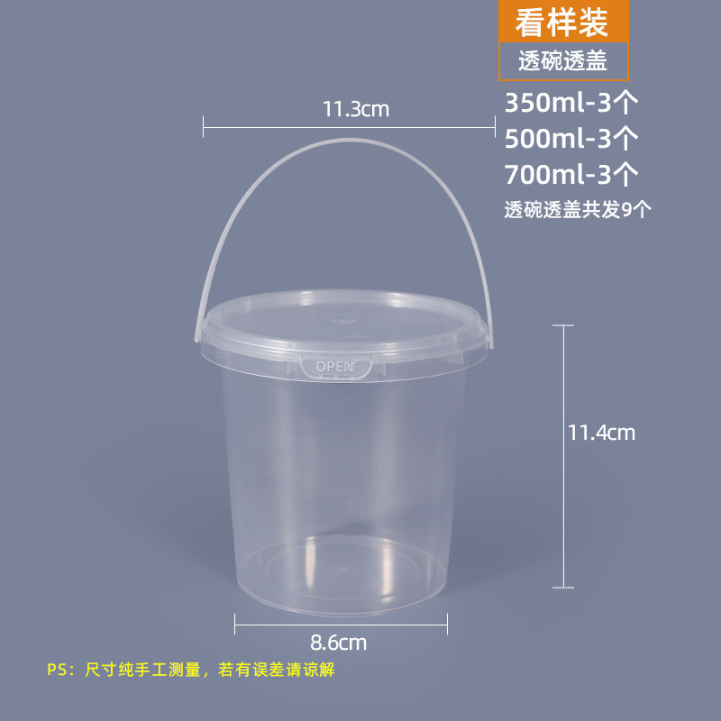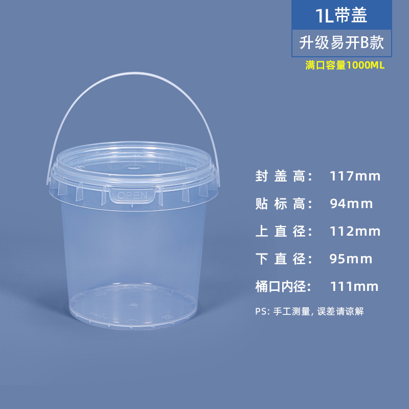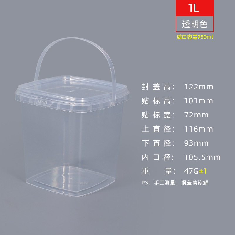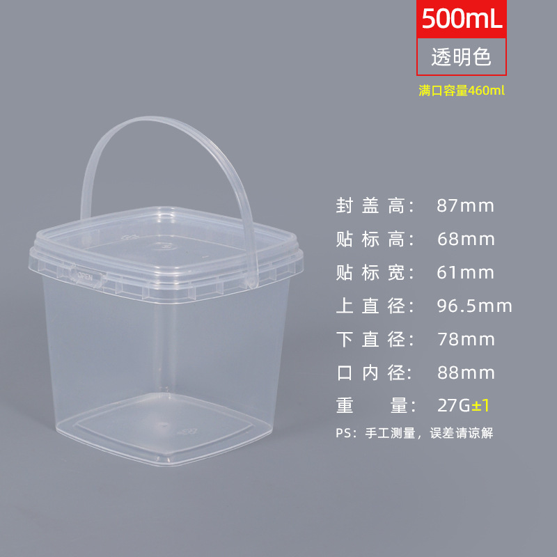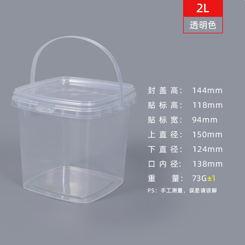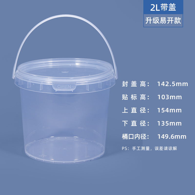 식품 등급 5L 플라스틱 버킷 고온 저항하는 투명 포장 버킷 핫 스프 밀봉 테이크 아웃 버킷 가정용 스토리지 버킷 버킷