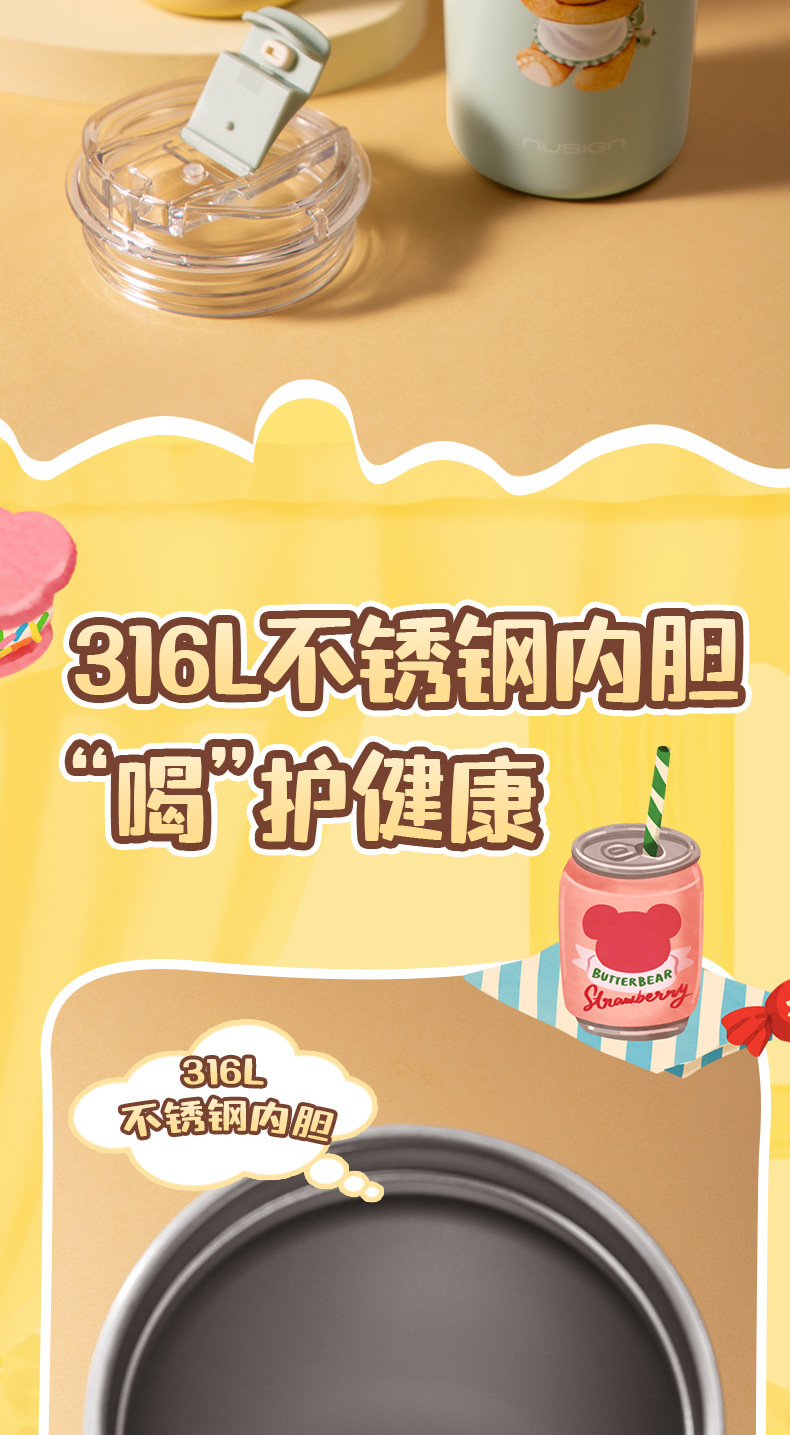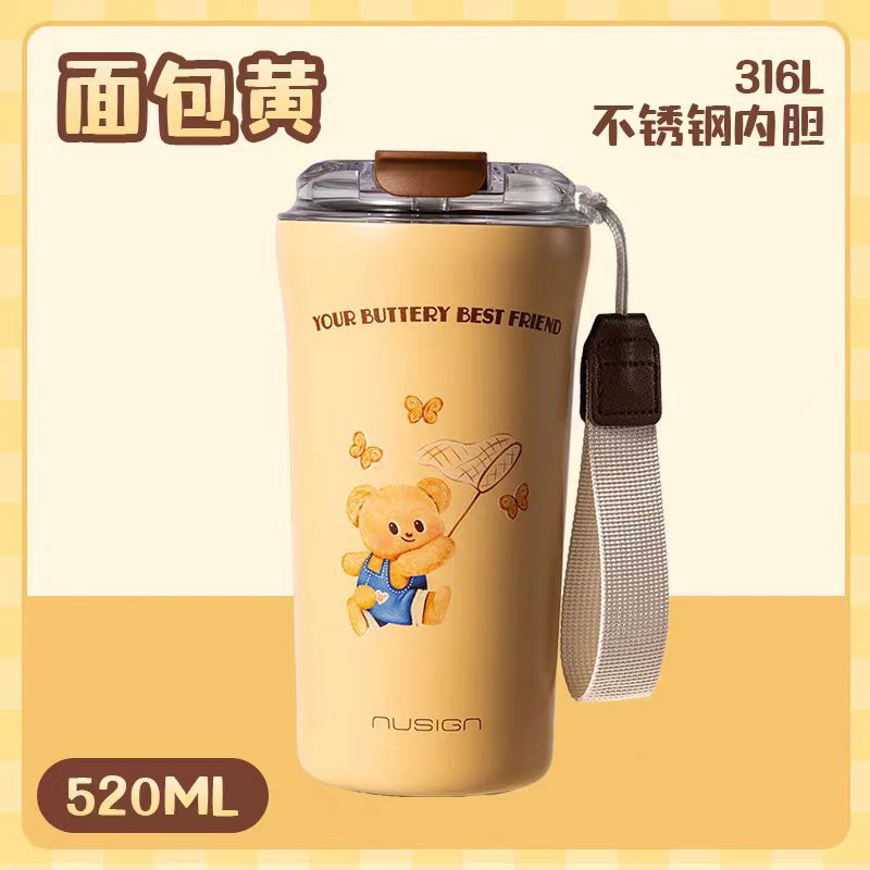 델리 NS855-B 버터 베어 직접 음료 커피 컵 316 스테인레스 스틸 컵 편리한 새로운 대용량 물 컵스토어 가기