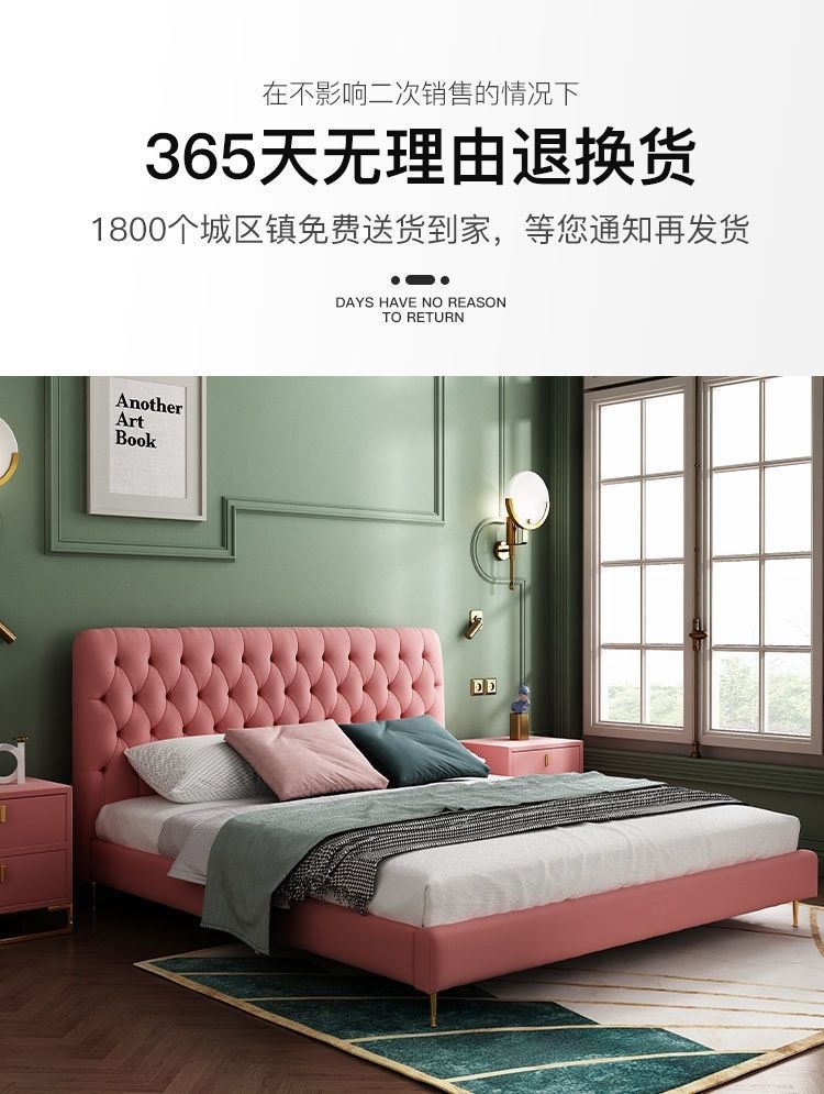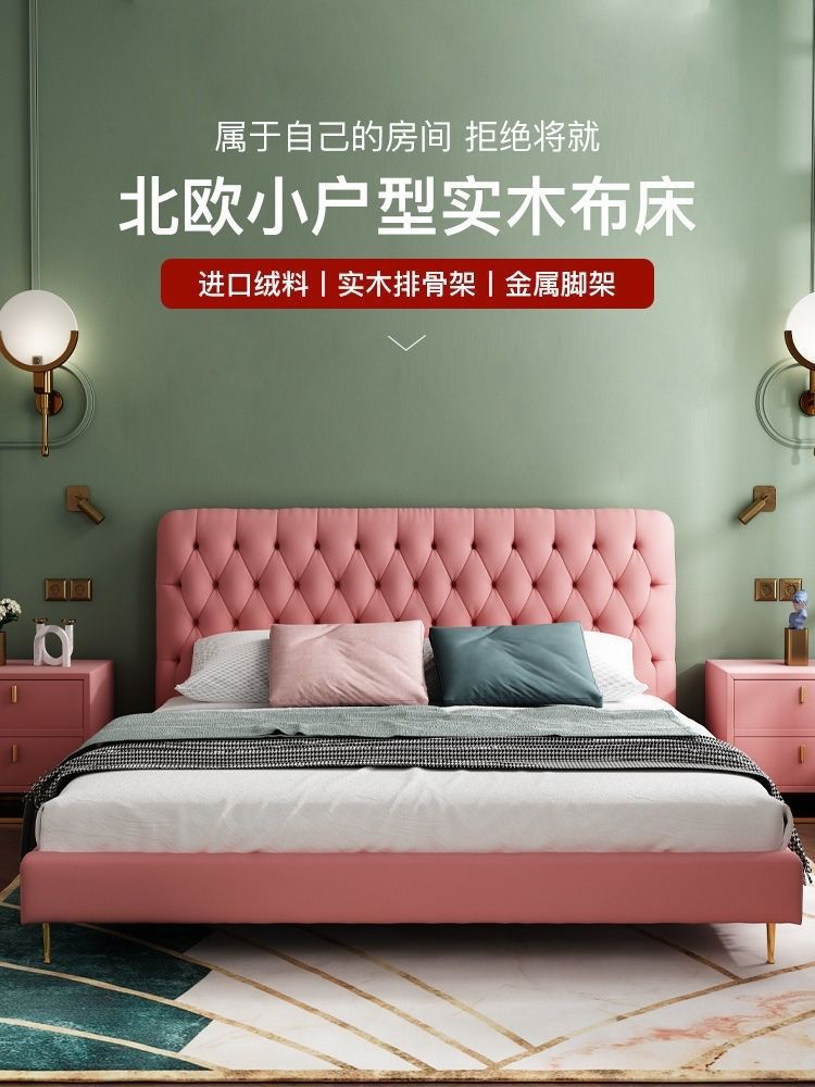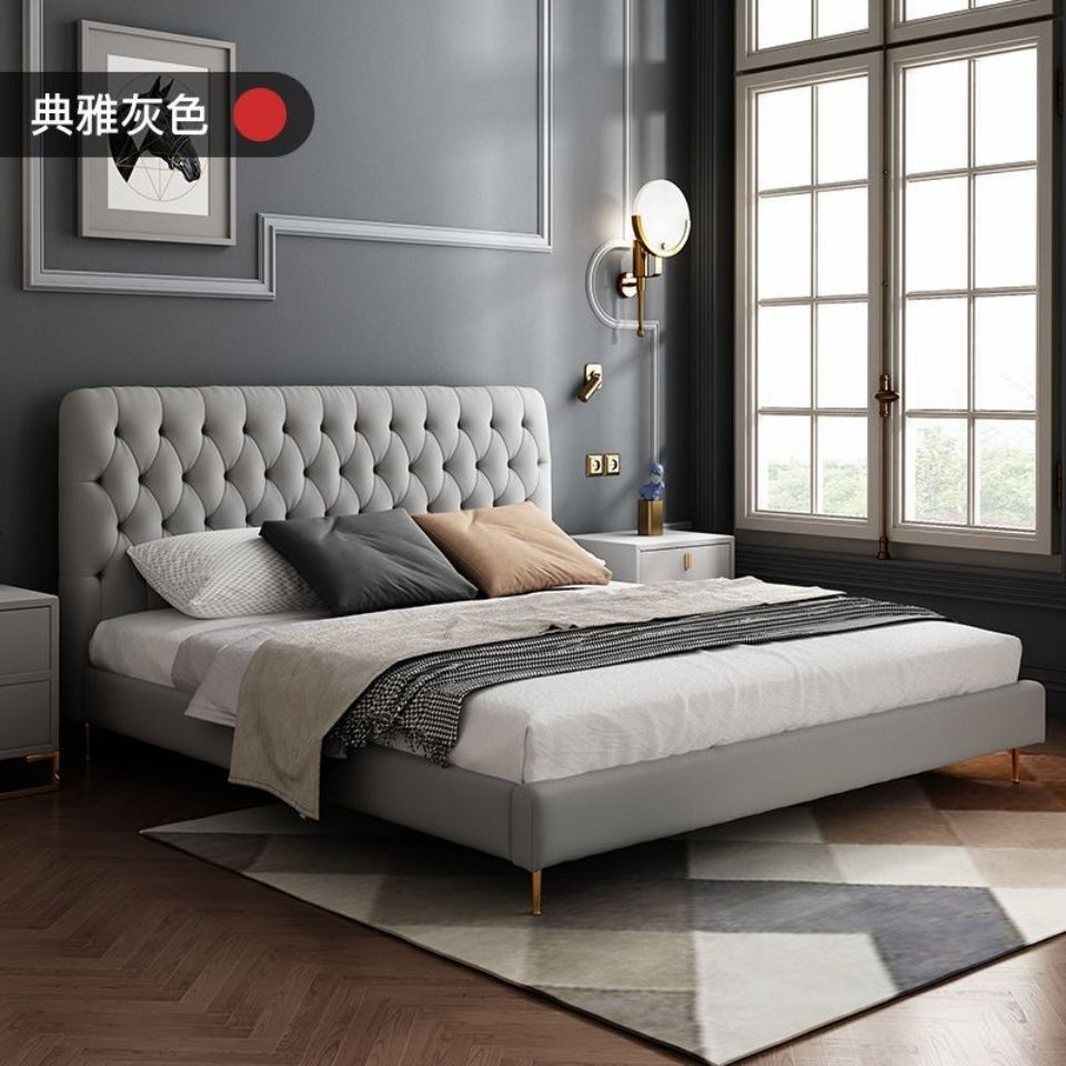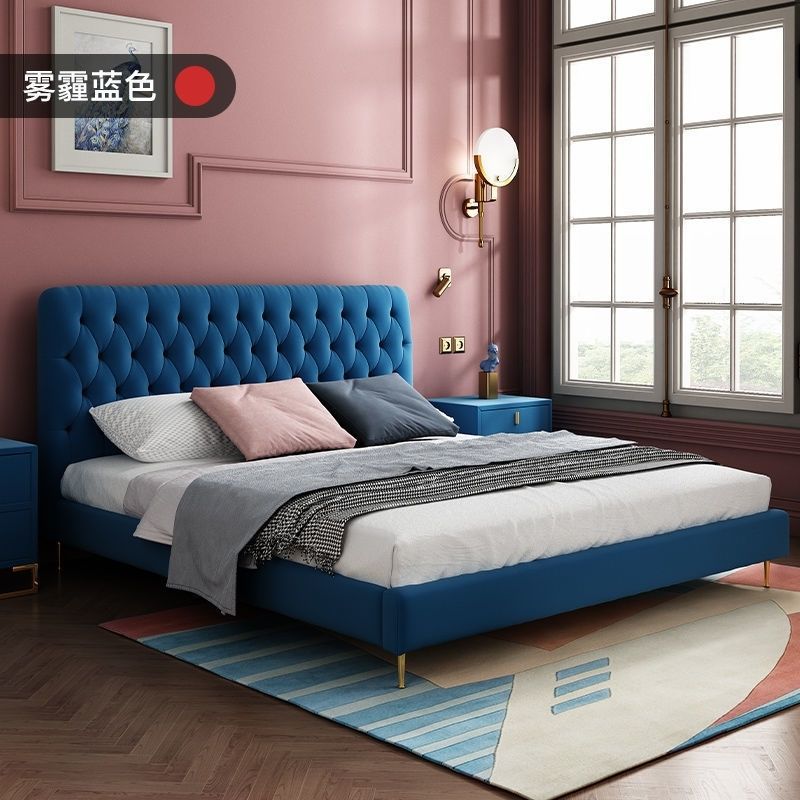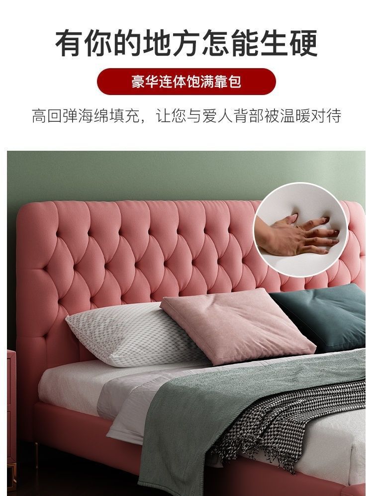 버클 노르딕 스타일 더블 베드 인터넷 인기있는 Ins 간단한 현대 양털 마스터 침실 올매치 아메리칸 스타일 소프트 백 침대 원단 침대스토어 가기