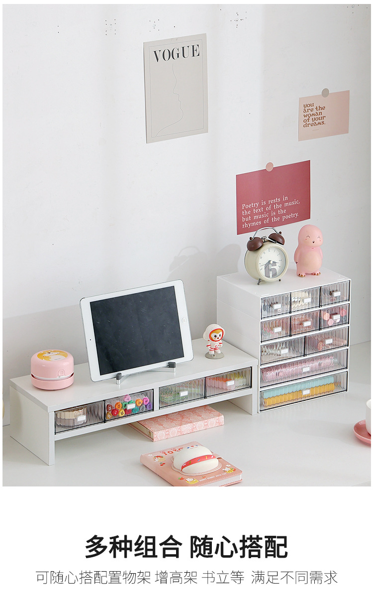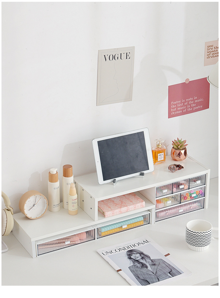 ✅컴퓨터 높은 랙 데스크탑 스토리지 박스 서랍 유형 노트북 사무실 기숙사 책상 보관