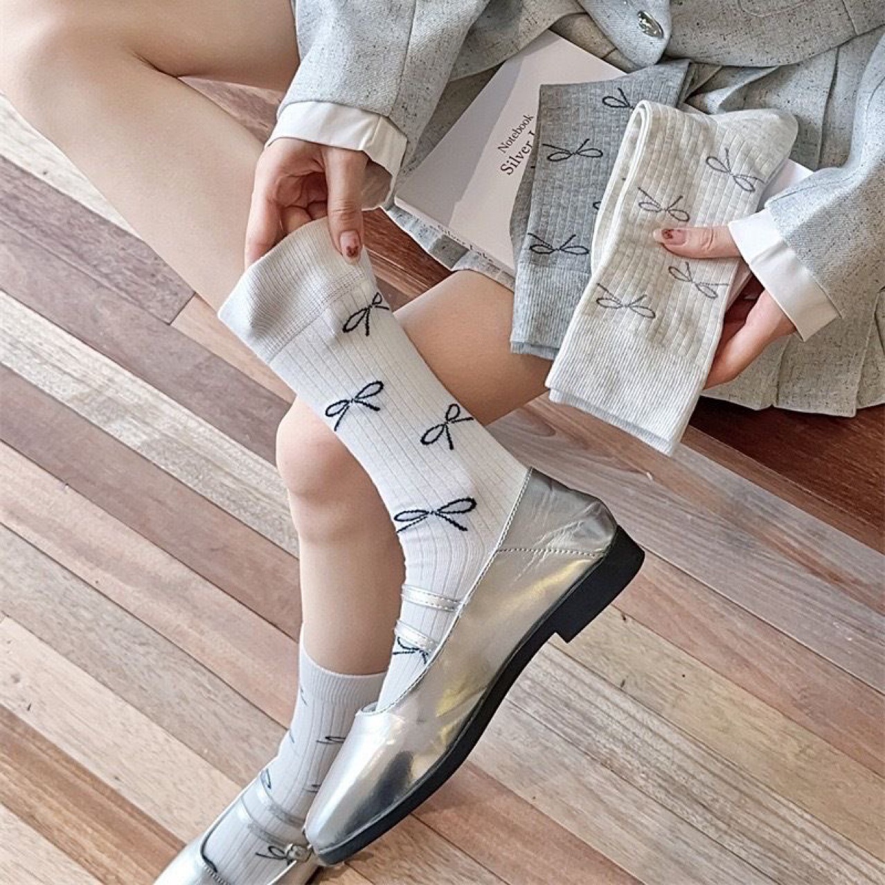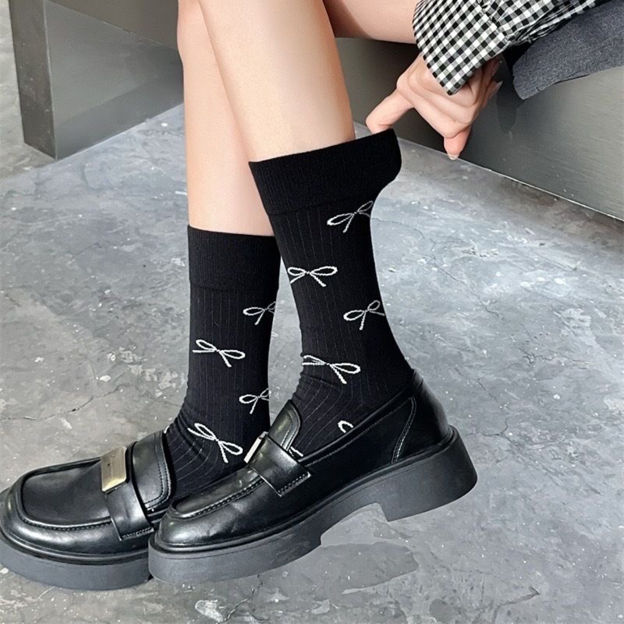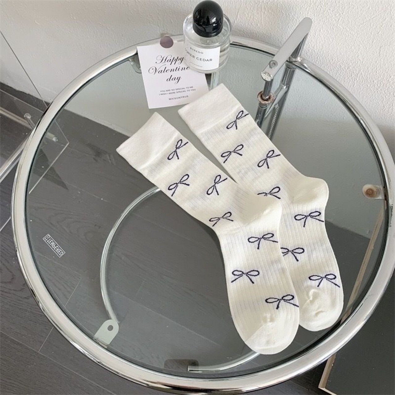 절묘한 풀 프린트 활 ~ 일본 여성 더미 양말 miu 바람 봄과 가을 미국 대학 스타일 양말면