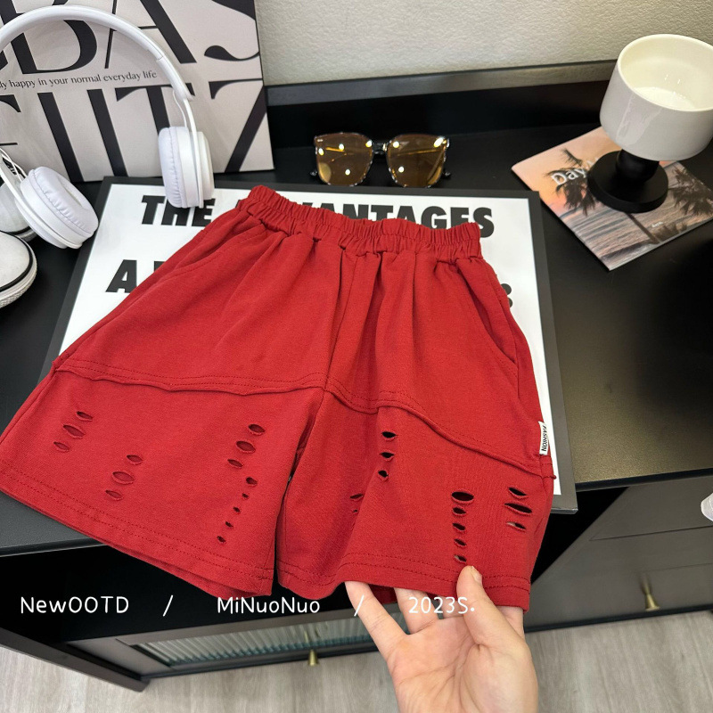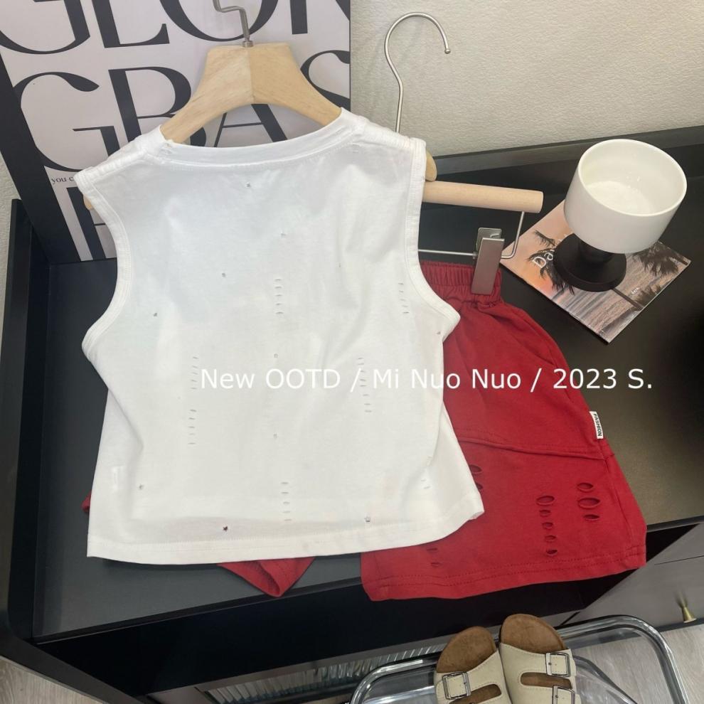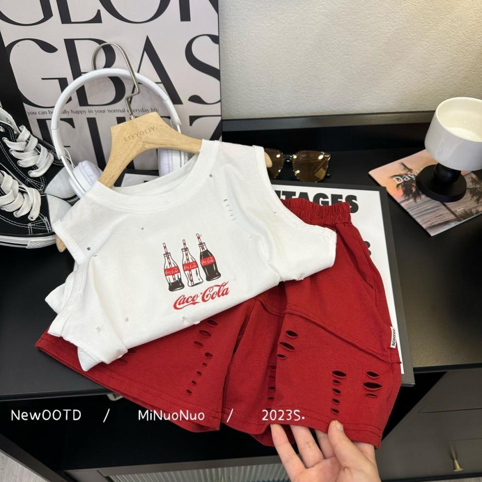 2025 여름 새로운 아동복 조끼 티셔츠 반바지 세트 조수 소년 여름 민소매 인쇄 구멍 조수스토어 가기