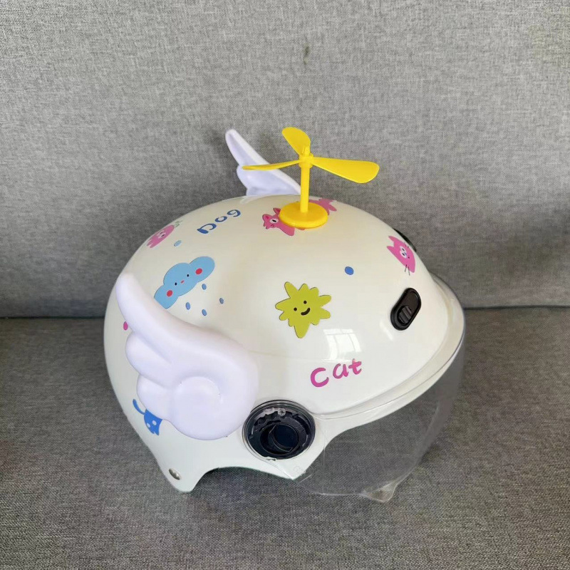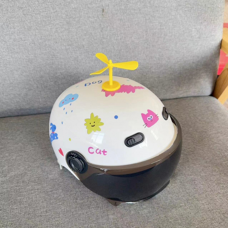 • 노란색 헬멧 + abc 스티커 + 자외선 차단제 안경 + 풍차 날개