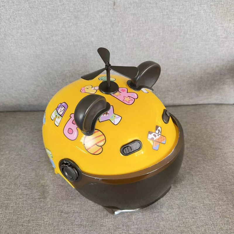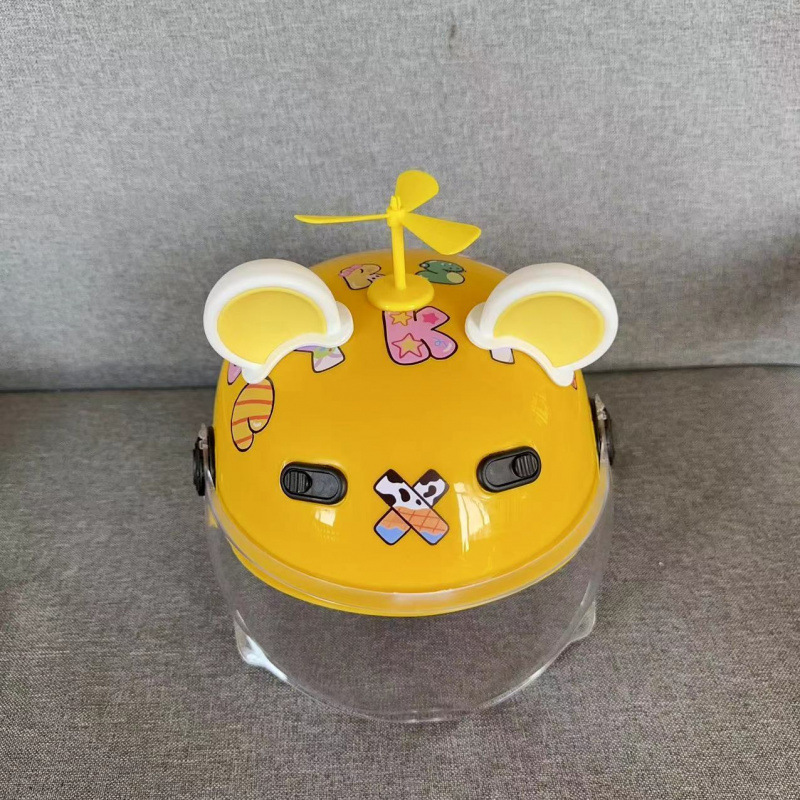 • 노란색 헬멧 + abc 스티커 + 자외선 차단제 안경 + 검은 풍차 흑곰 귀