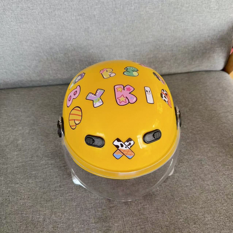 • 노란색 헬멧 + abc 스티커 + 투명 거울