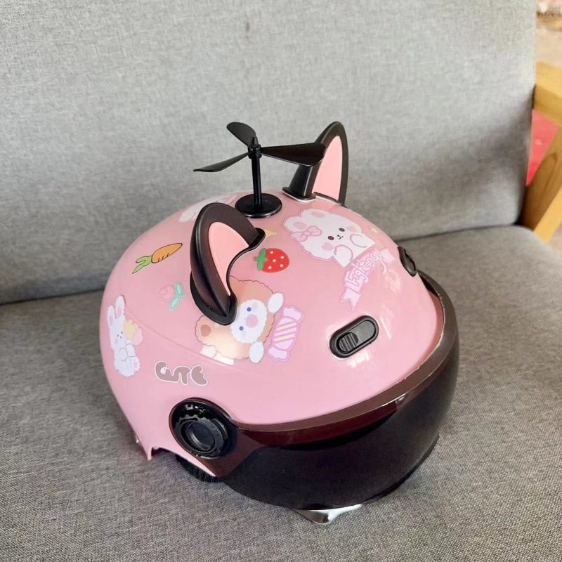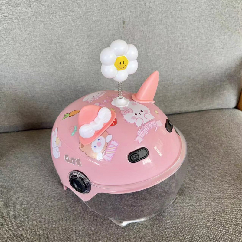 • 핑크 헬멧 - 꽃곰 토끼 + 자외선 차단 안경 + 풍차 흰색 핑크 곰 귀