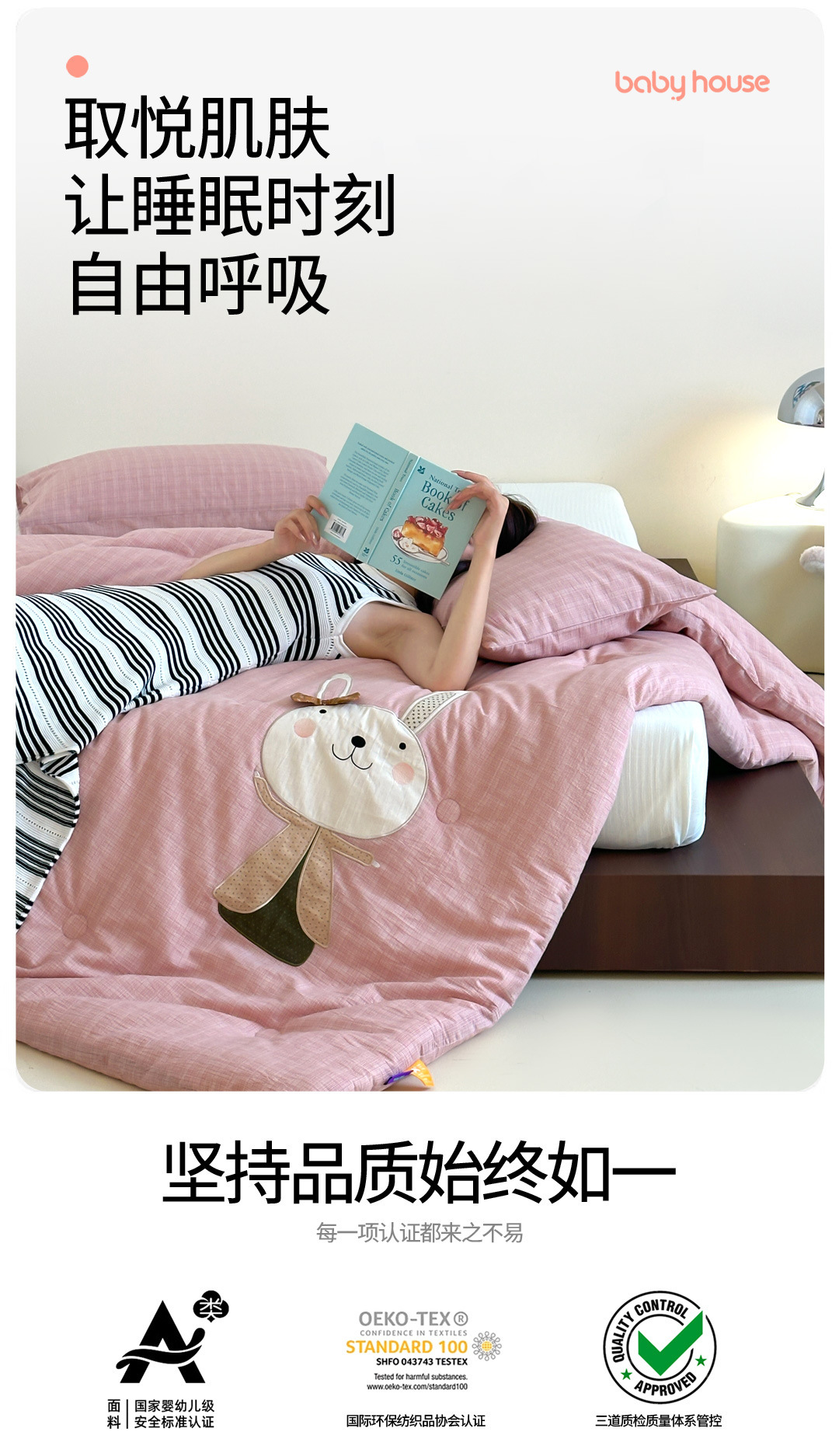 만화 토끼 면 원사 염색 만화 탭 자수 봄 가을 겨울 퀼트 싱글 더블 타입 A 기계 세척 가능한 항균 순수 퀼트스토어 가기