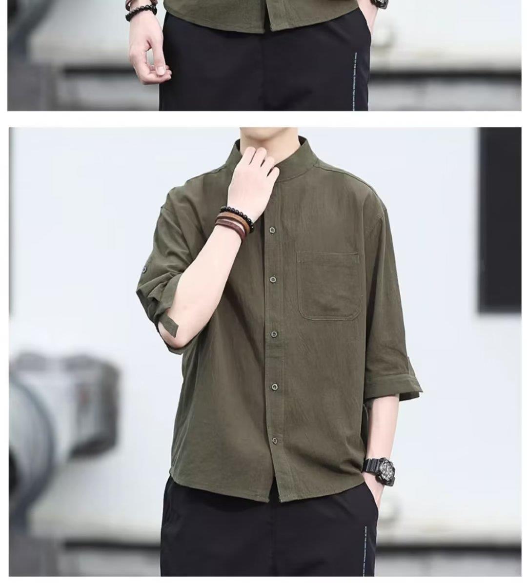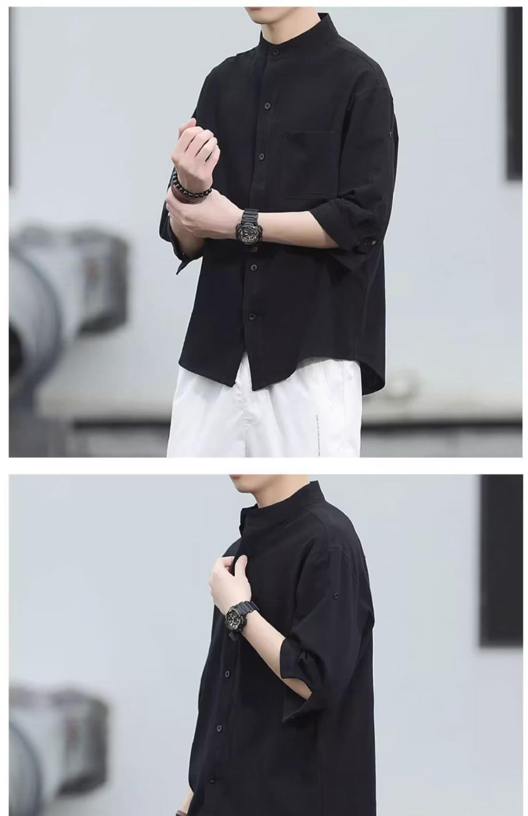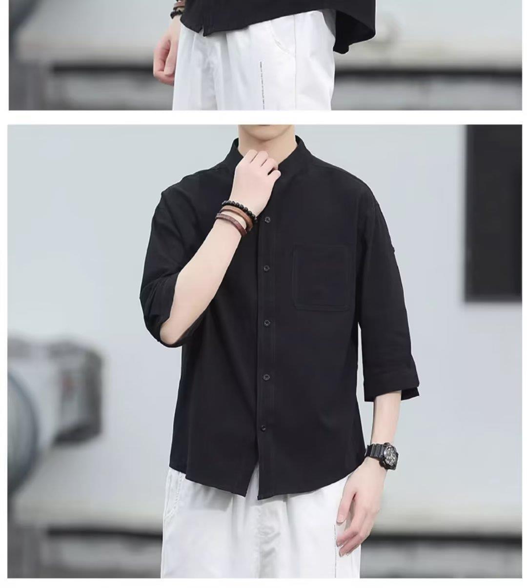 여름 칼라 셔츠 남자 세븐 슬리브 셔츠 일본식 느슨한 플러스 사이즈 남자 반소매 한국 스타일 유행 캐주얼