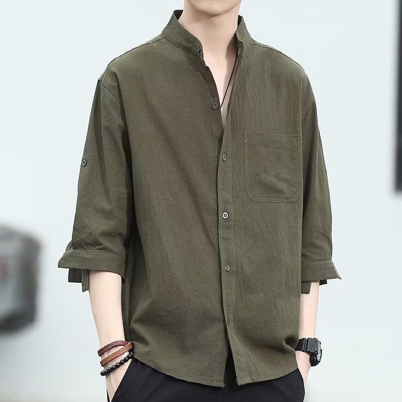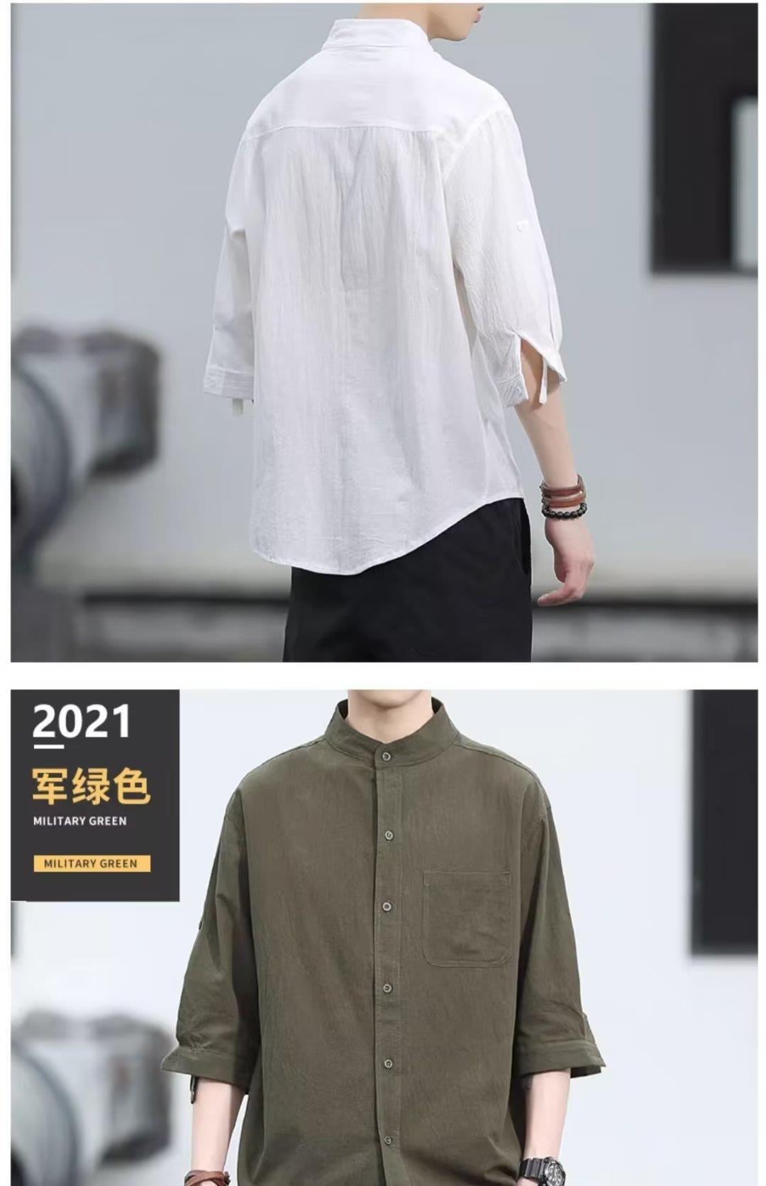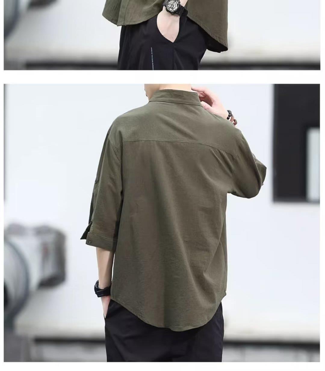 여름 칼라 셔츠 남자 세븐 슬리브 셔츠 일본식 느슨한 플러스 사이즈 남자 반소매 한국 스타일 유행 캐주얼