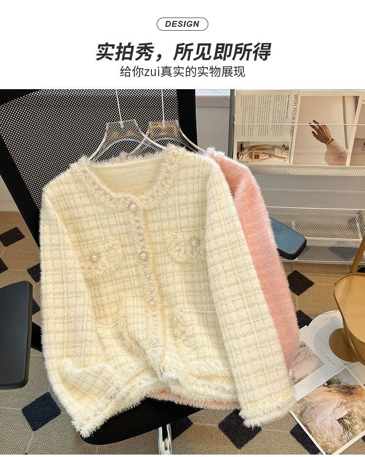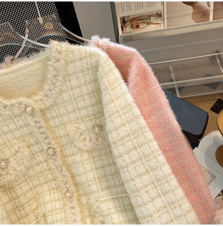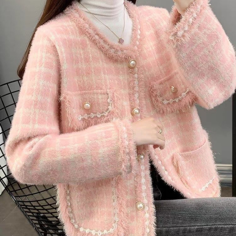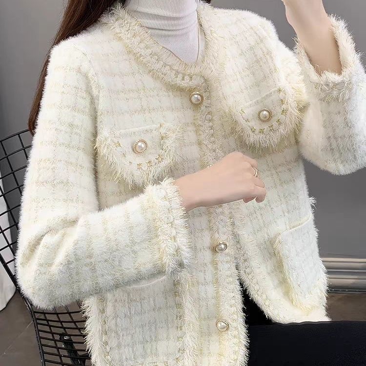 향기로운 스타일 2025 밍크 벨벳 새로운 프랑스 스타일 우아한 봄과 가을 니트 카디건스토어 가기