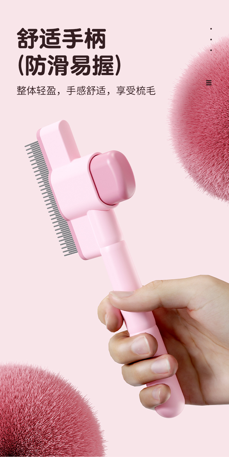 • ABS 마사지 벼룩 제거 셀프 클리닝 빗-핑크