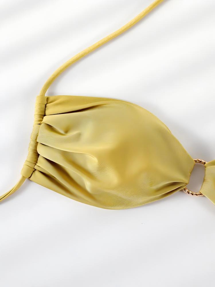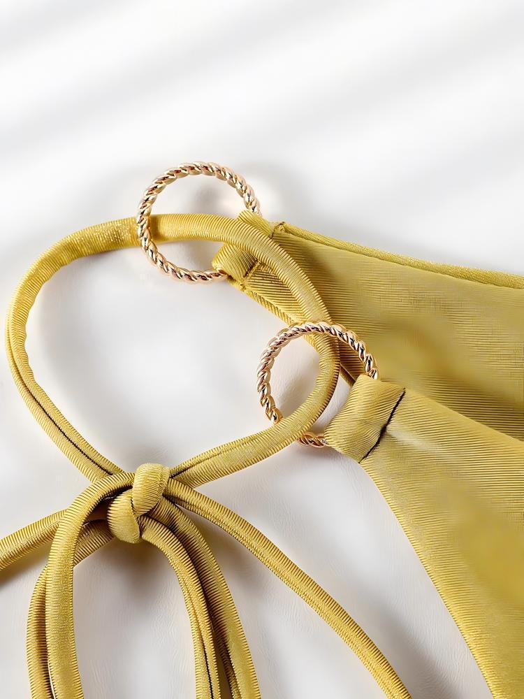 2025 새로운 솔리드 컬러 섹시 링 할로우 아웃 스플릿 수영복 레이스 업 넥 튜브 탑 투피스 비키니 세트