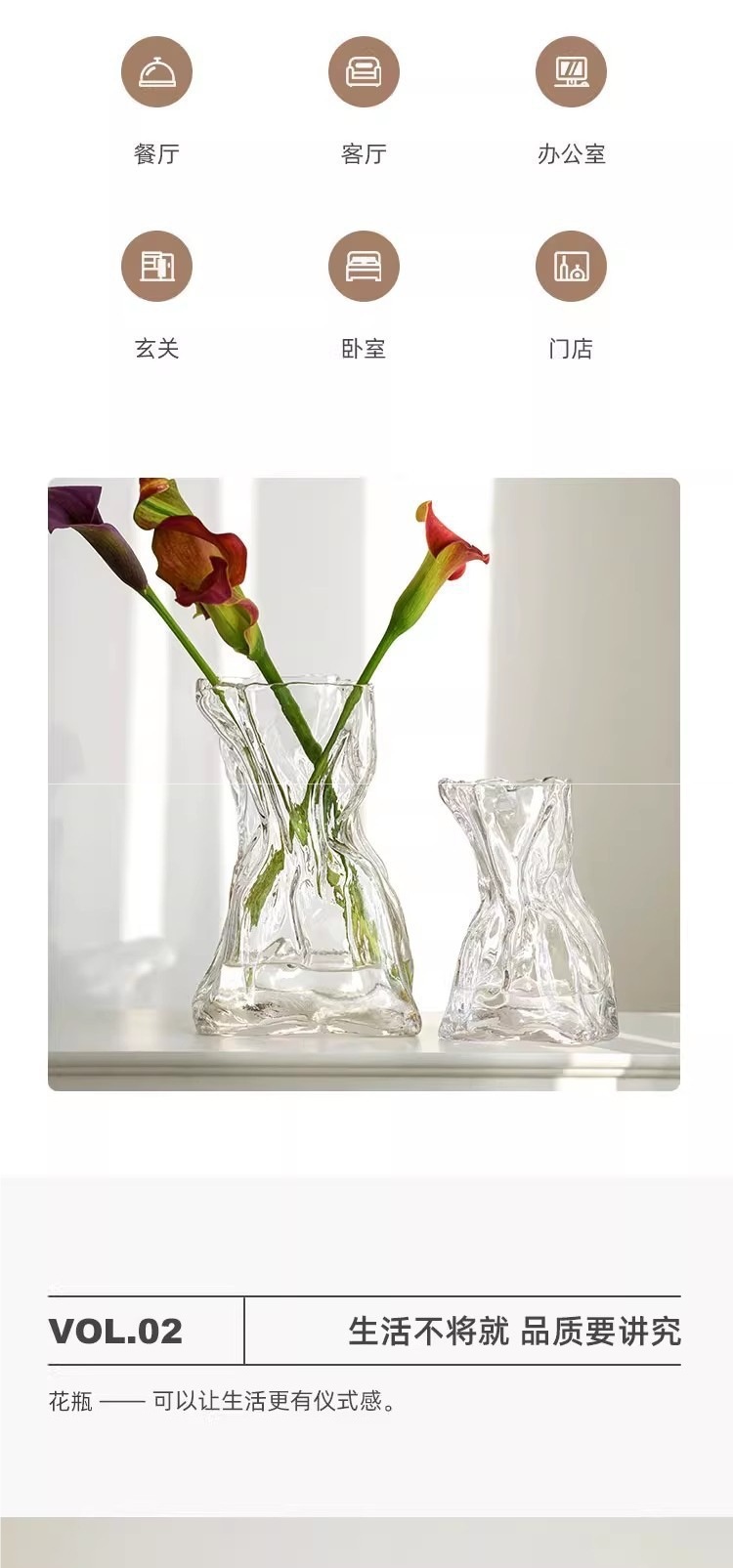고급 감각 간단한 창조적 인 불규칙한 홈스테이 꽃병 투명 유리 거실 데스크탑 꽃 배열 물 기르기 장식 장식품스토어 가기