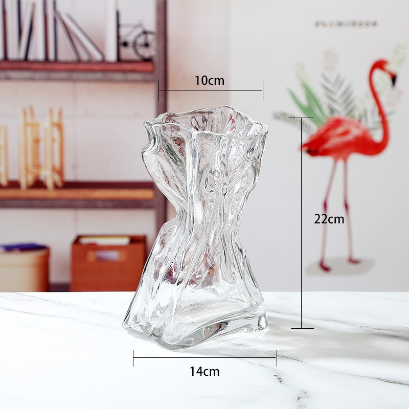 고급 감각 간단한 창조적 인 불규칙한 홈스테이 꽃병 투명 유리 거실 데스크탑 꽃 배열 물 기르기 장식 장식품