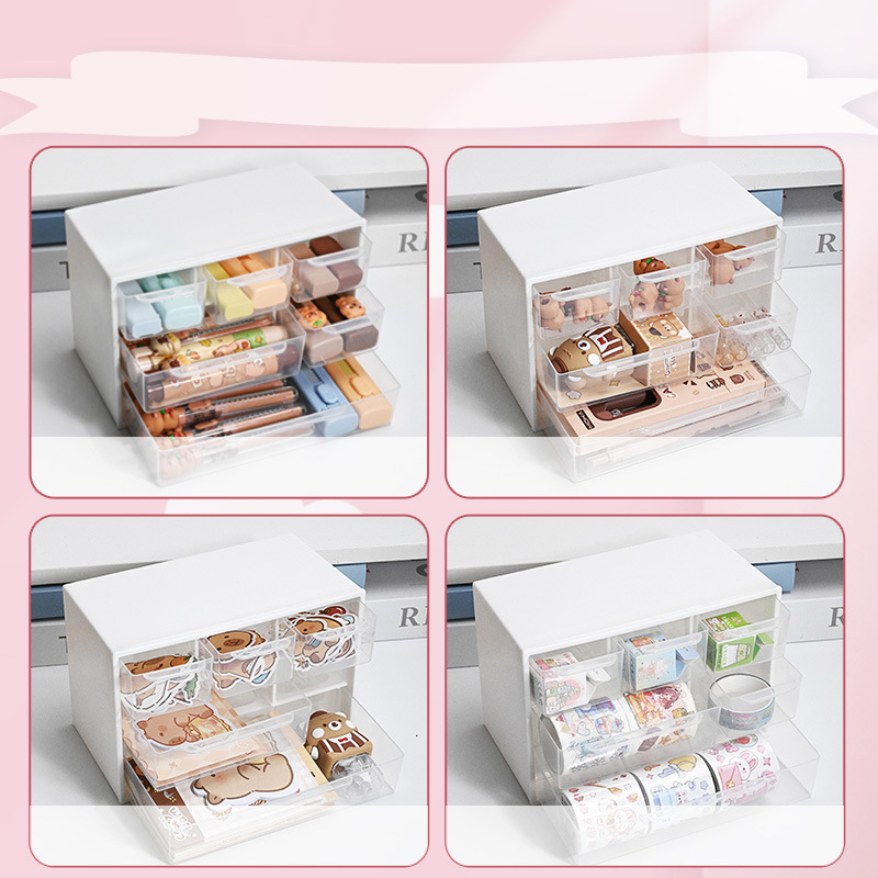 국경 간 Jiugongge 투명 저장 상자 학생 문구 손 계정 주최자 상자 서랍 형 먼지 방지 보석 상자