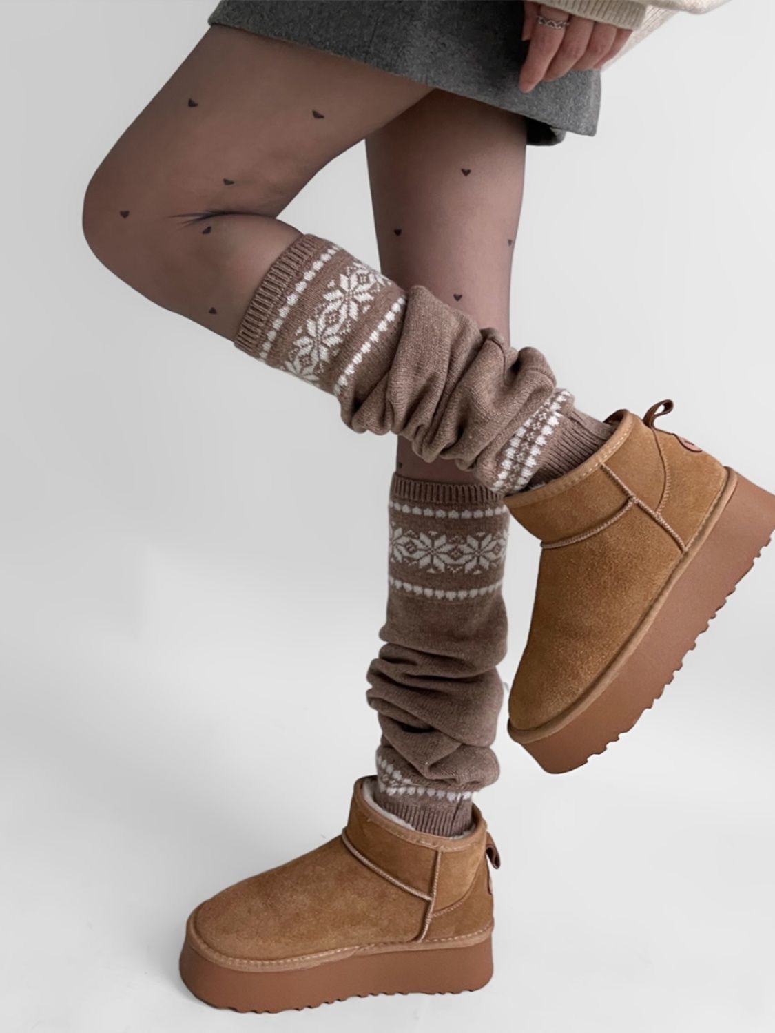 일본 스타일 매력적인 여성용 가을 겨울 중간 길이 양말, 눈꽃 무늬 니트 따뜻한 다용도 종아리 양말, 여성용 Y2K 양말