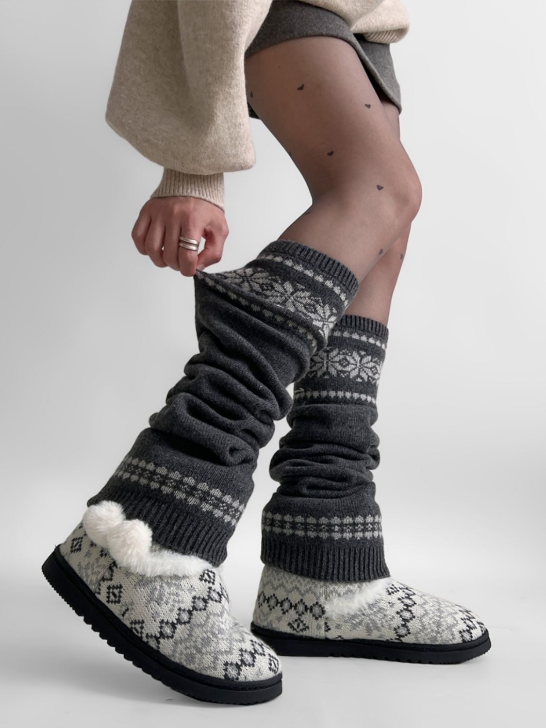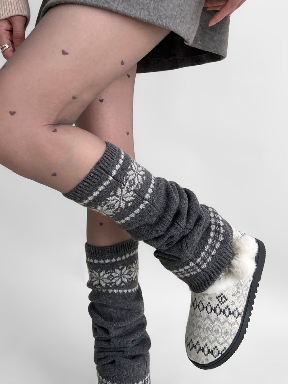 일본 스타일 매력적인 여성용 가을 겨울 중간 길이 양말, 눈꽃 무늬 니트 따뜻한 다용도 종아리 양말, 여성용 Y2K 양말스토어 가기