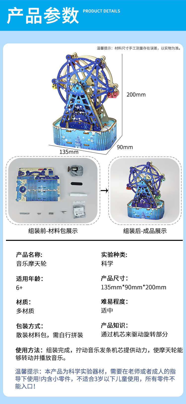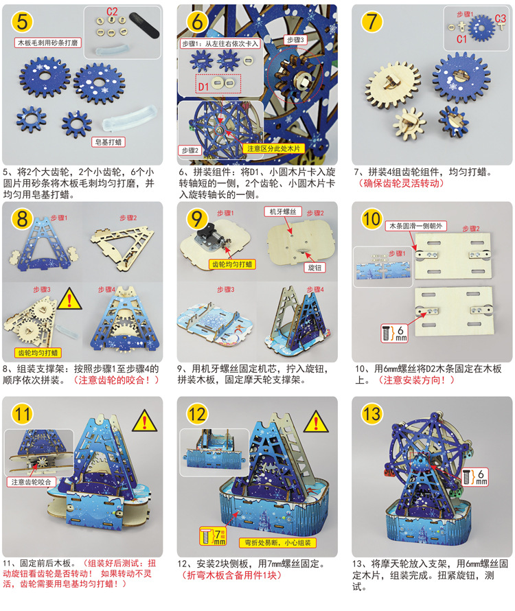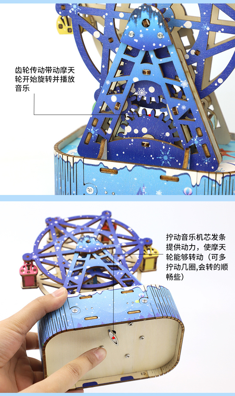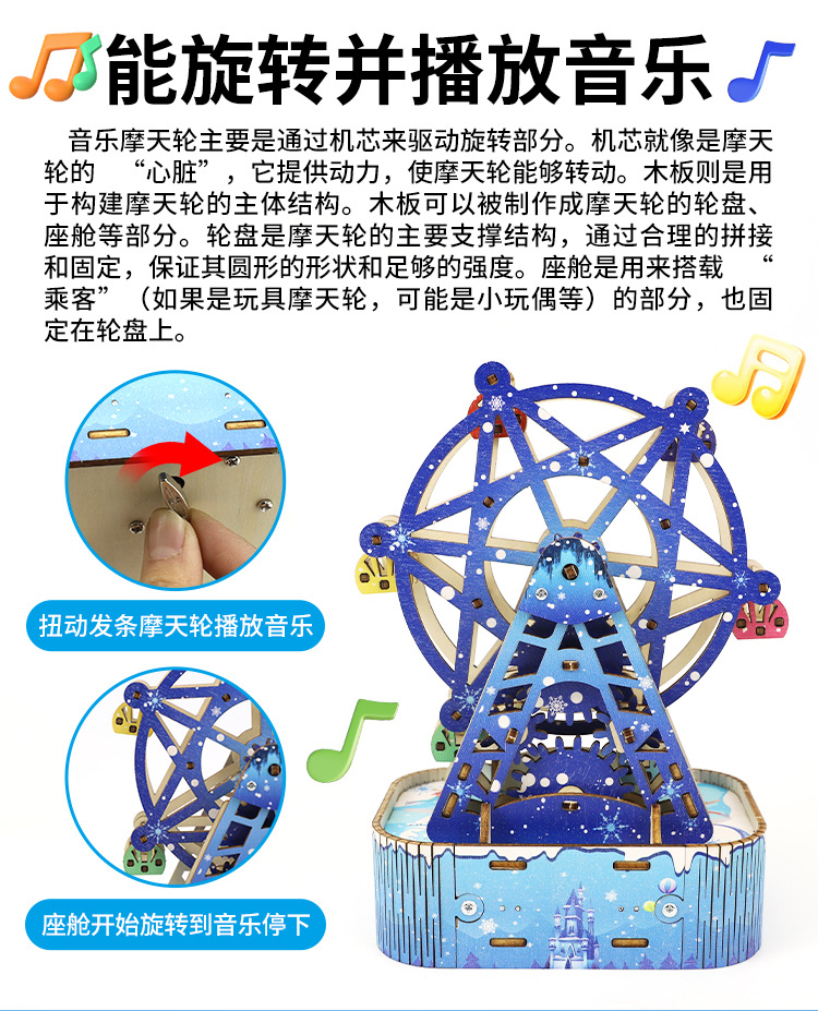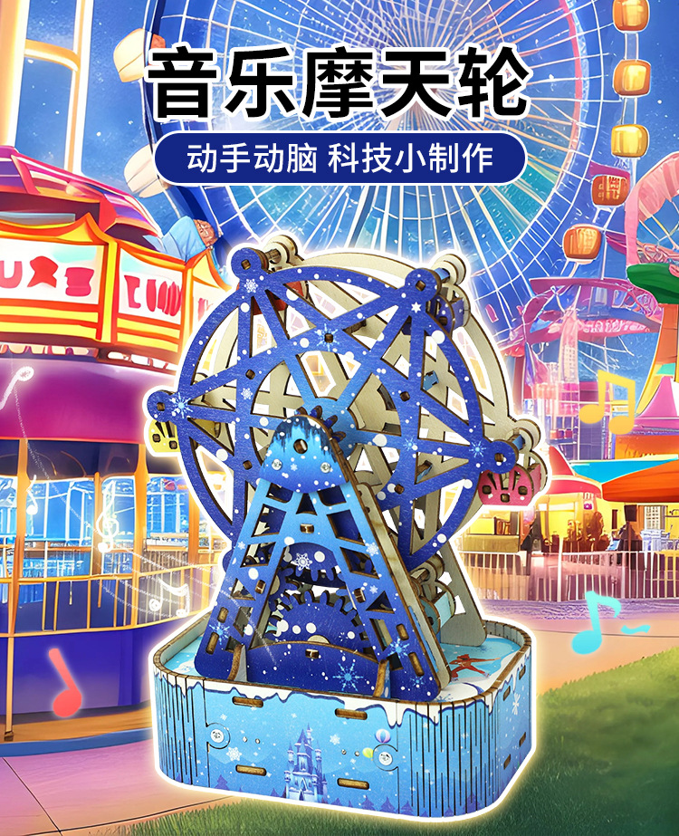 증기 기술 작은 생산 diy 음악 관람차 모델 3D 퍼즐 초등 학생을위한 과학 수제 장난감스토어 가기