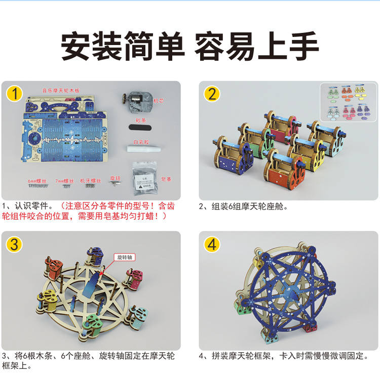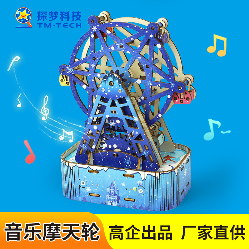 증기 기술 작은 생산 diy 음악 관람차 모델 3D 퍼즐 초등 학생을위한 과학 수제 장난감