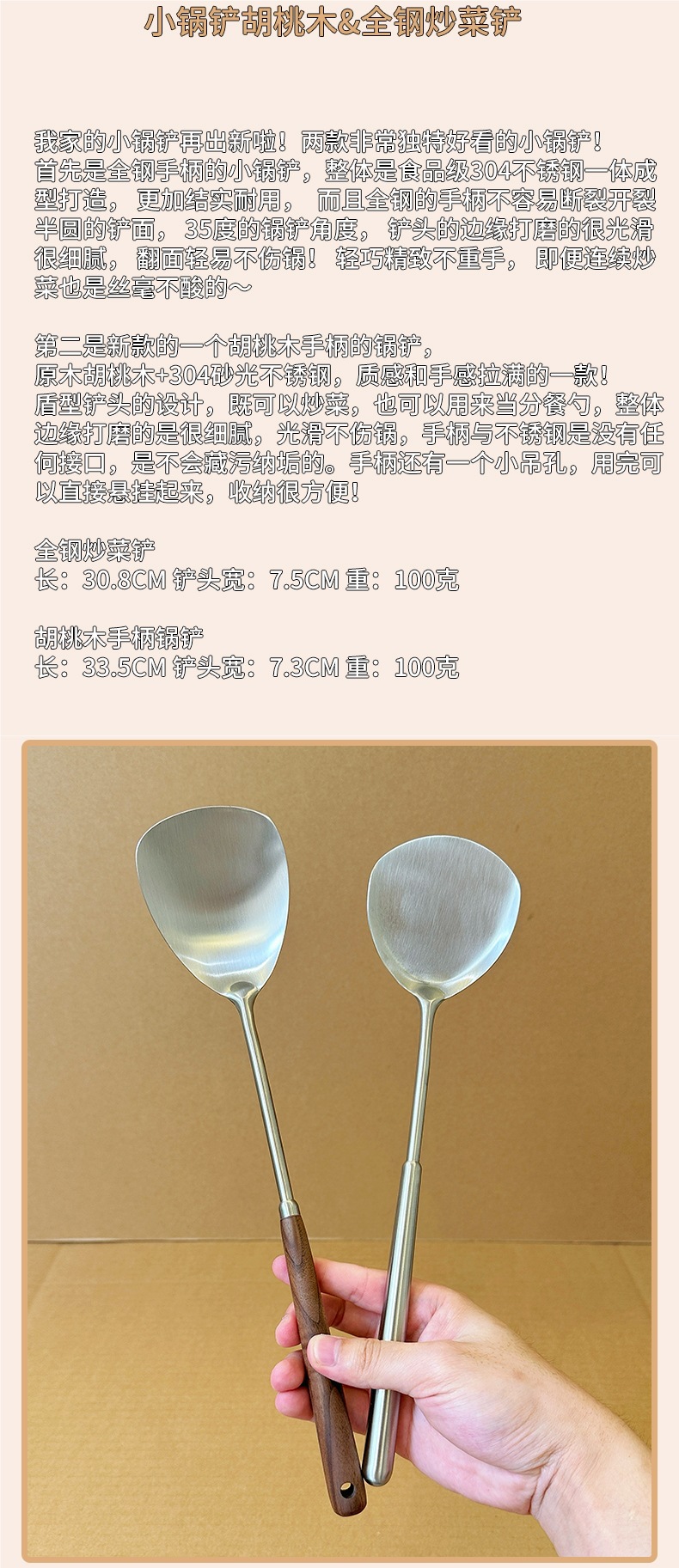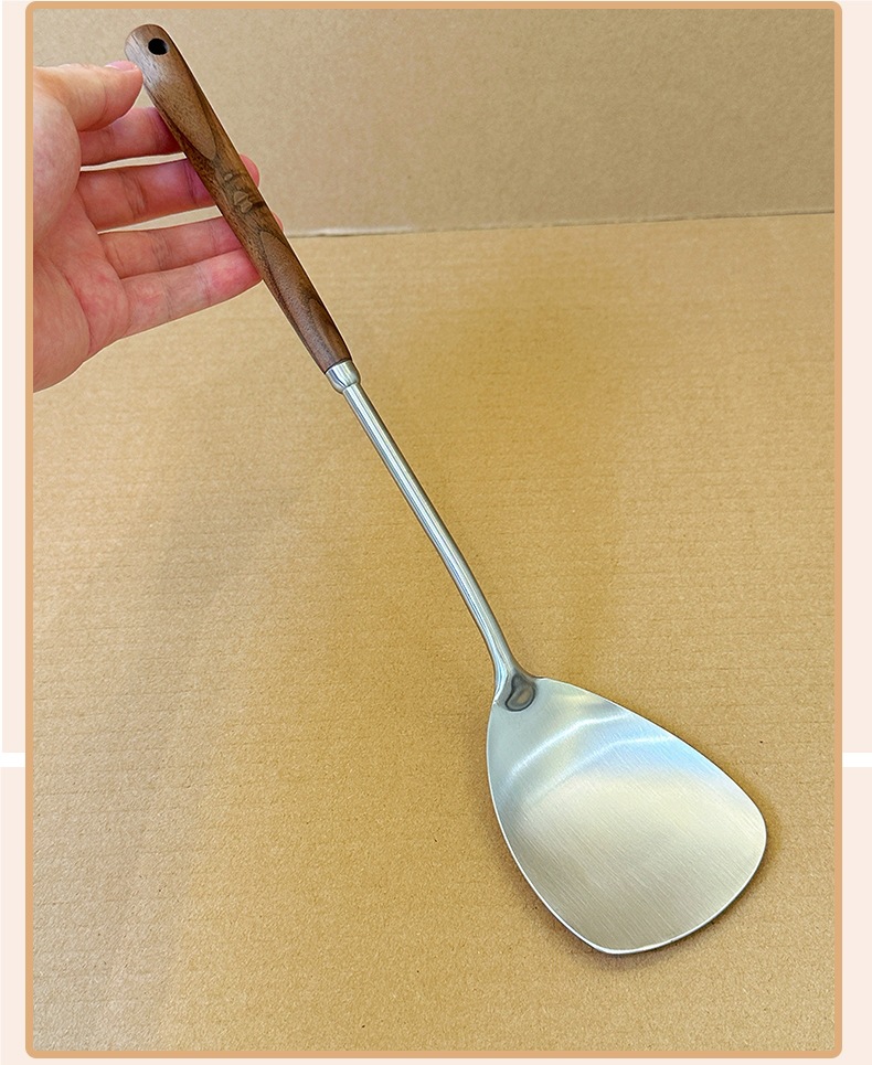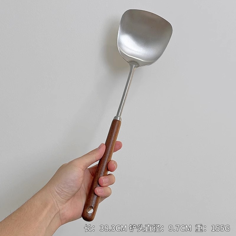 새로운 스타일-304 스테인레스 스틸 작은 볶음 삽 가정용 미니 스몰 사이즈 월넛 및 모든 스틸 튀김 볶음 삽스토어 가기