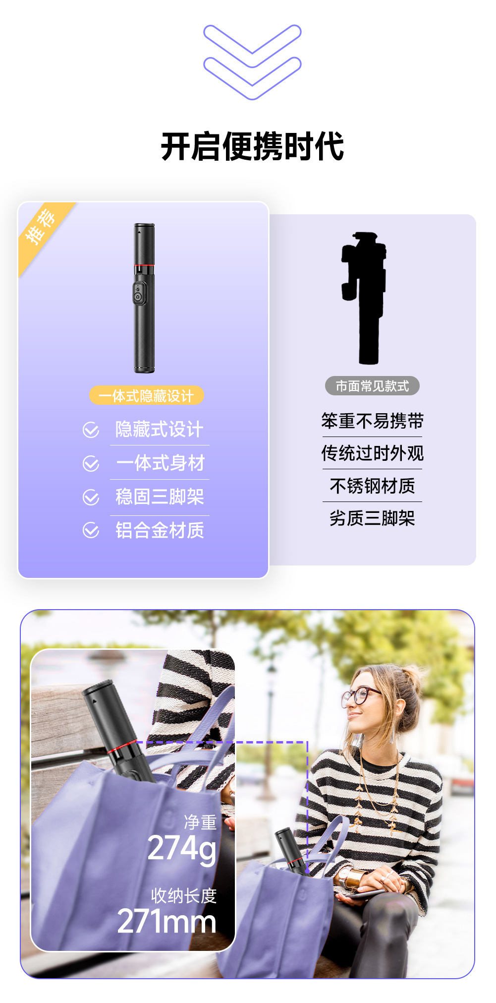 TOKQI 숨겨진 한 조각 셀카 스틱 C21 여행 휴대용 휴대 전화 삼각대 다기능 라이브 카메라 스탠드스토어 가기