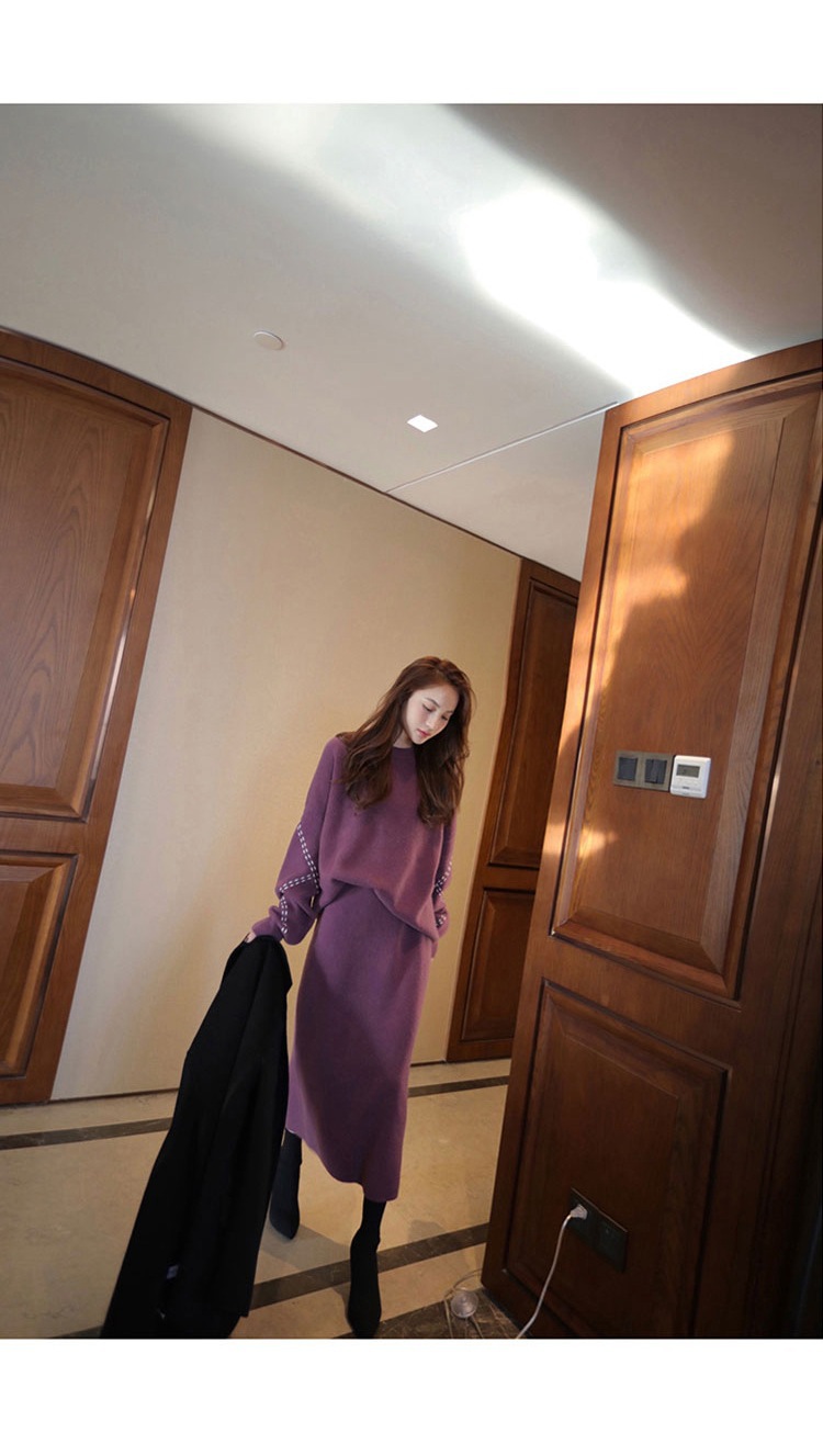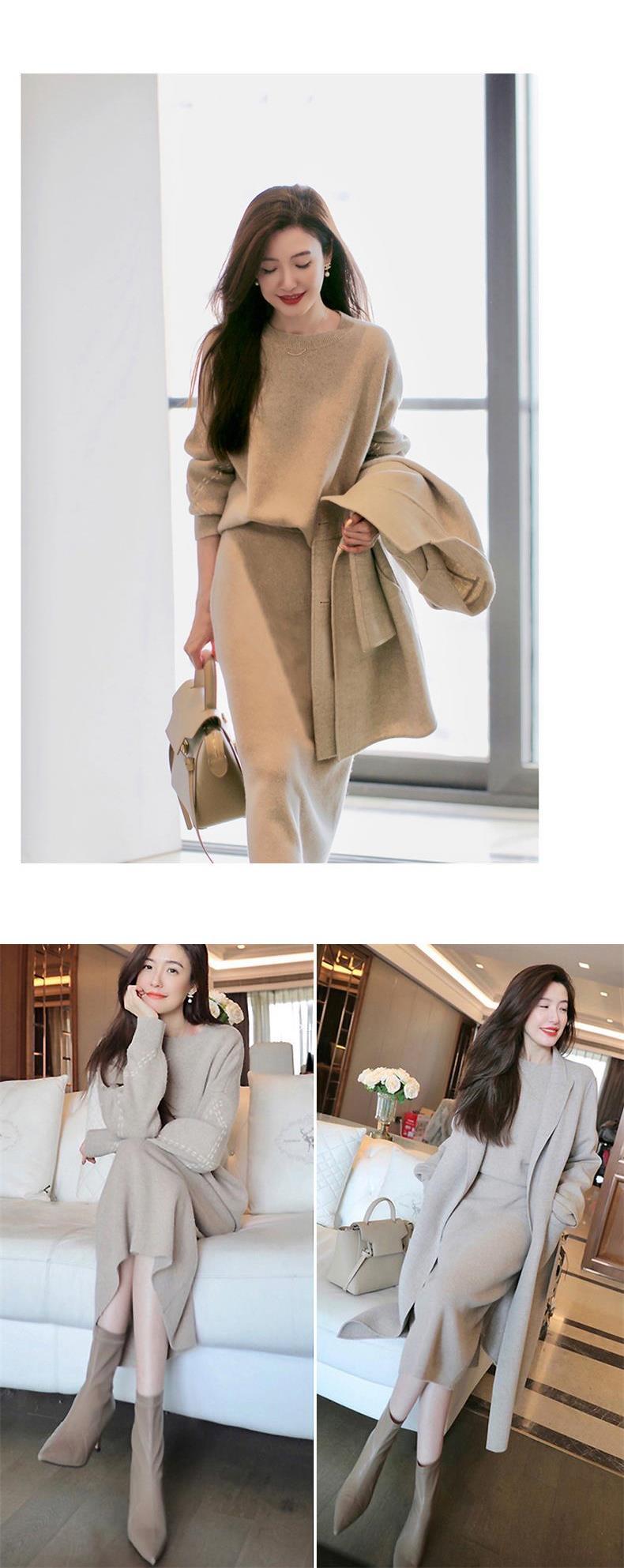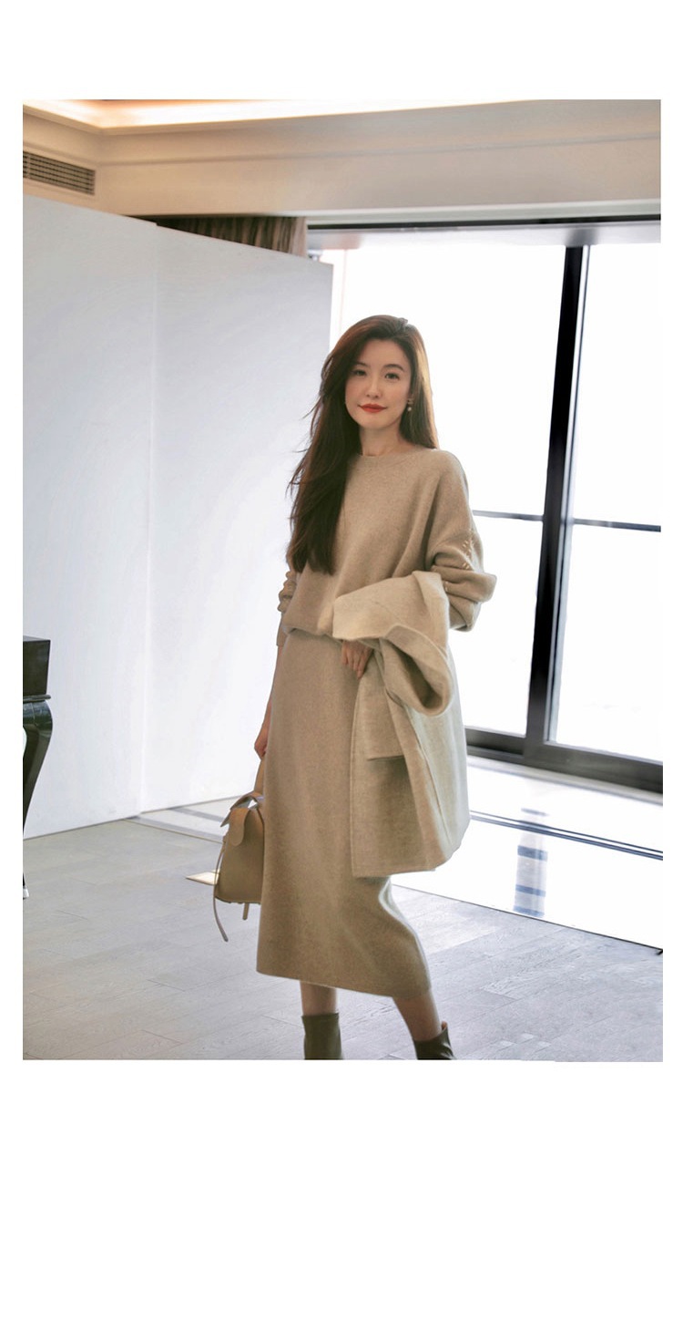 라이트 럭셔리 스타일 니트 세트 2025 겨울 신상 패션 여성용 상의+스웨터 스커트 투피스 세트스토어 가기