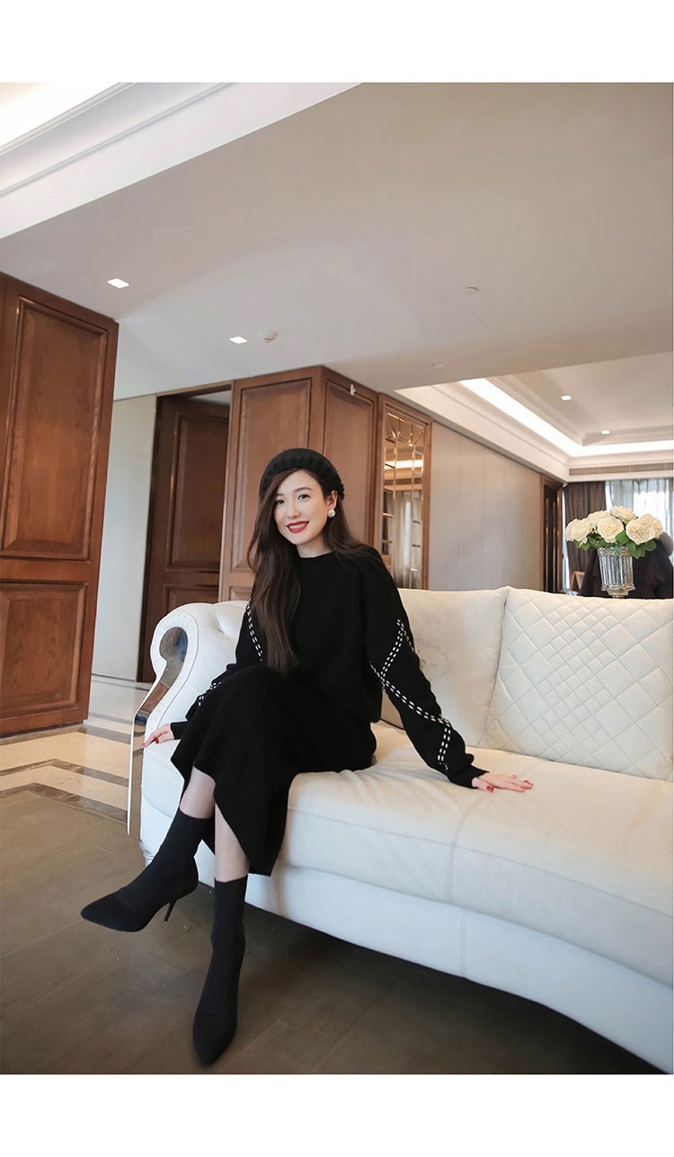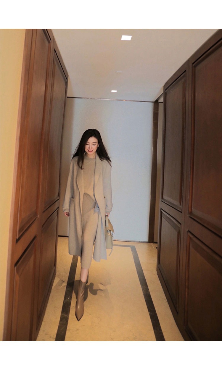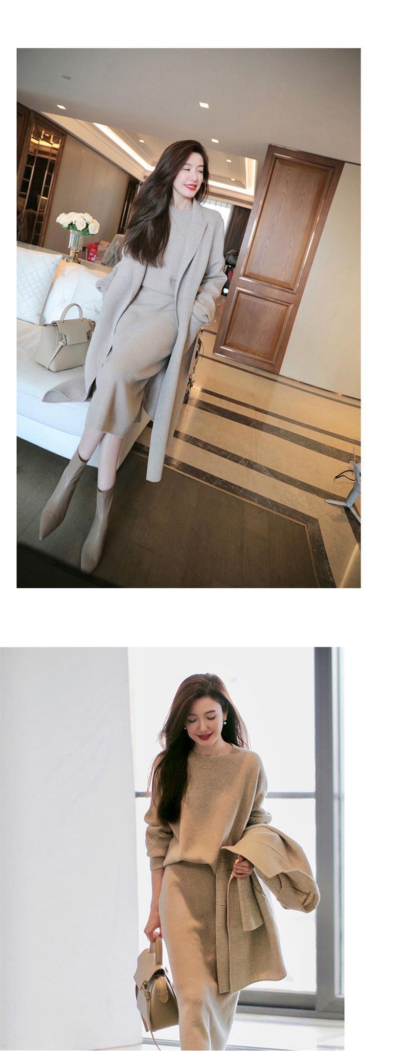 라이트 럭셔리 스타일 니트 세트 2025 겨울 신상 패션 여성용 상의+스웨터 스커트 투피스 세트스토어 가기