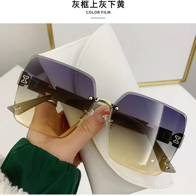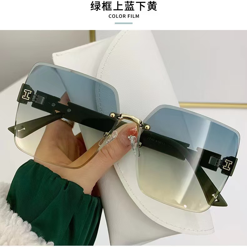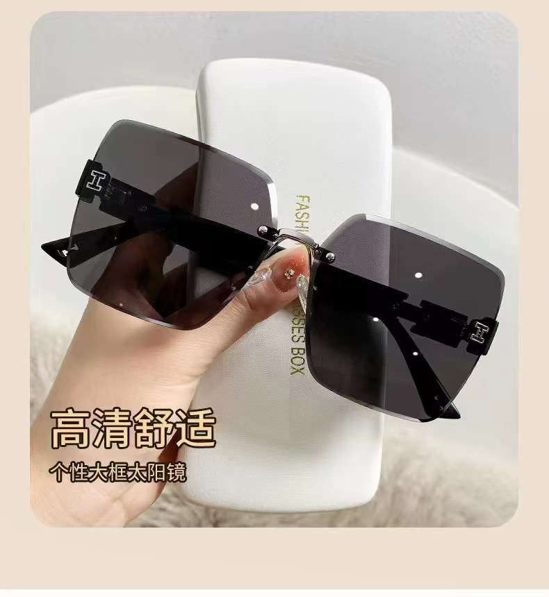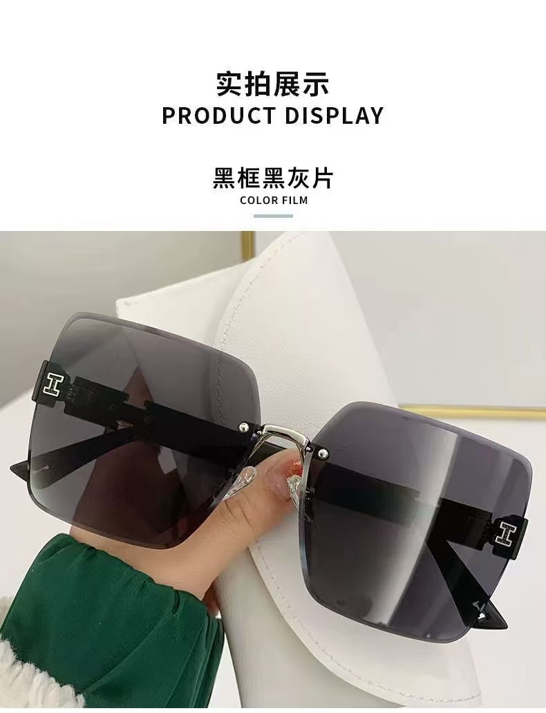 대형 프레임 H 선글라스, 패셔너블하고 고급스러운 무테 엣지 컷 여성용 선글라스, 맞춤형 슬리밍 인터넷 연예인 안경, 트렌디한 도매스토어 가기