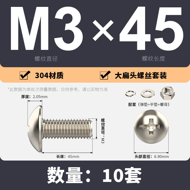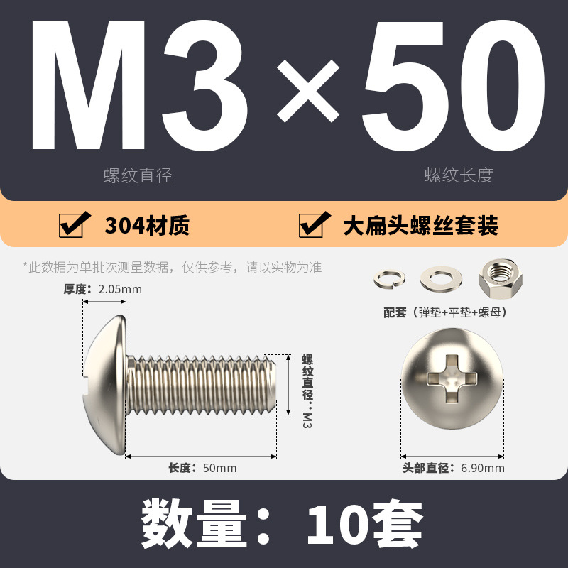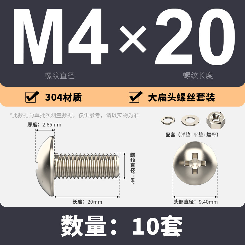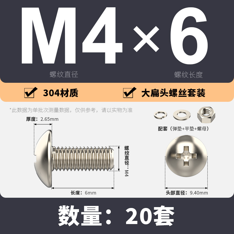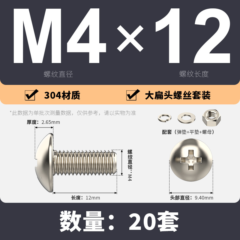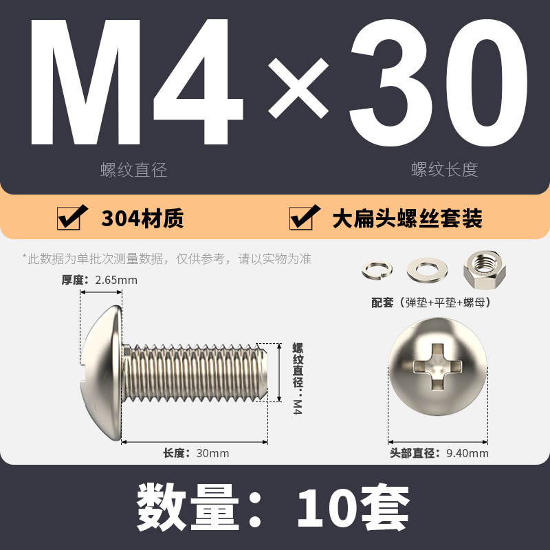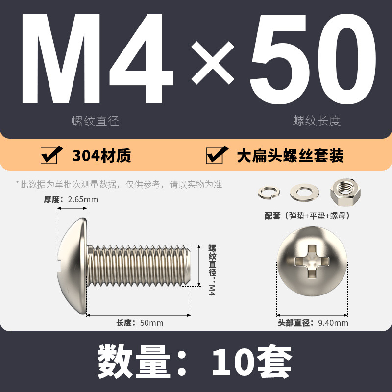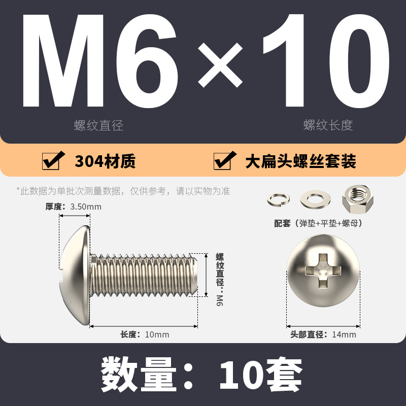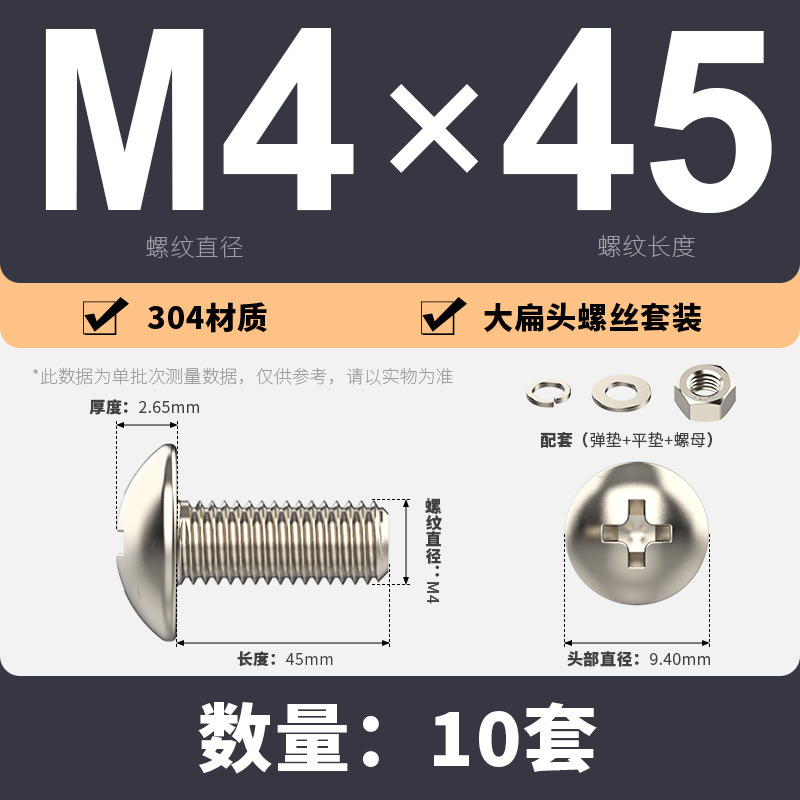 304 스테인레스 스틸 대형 플랫 헤드 필립스 스크류 너트 세트 플랫 패드 버섯 헤드 볼트 조합 완전한 책스토어 가기