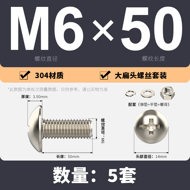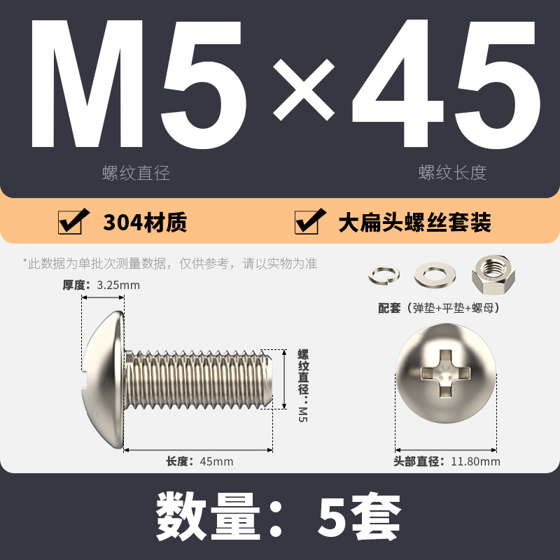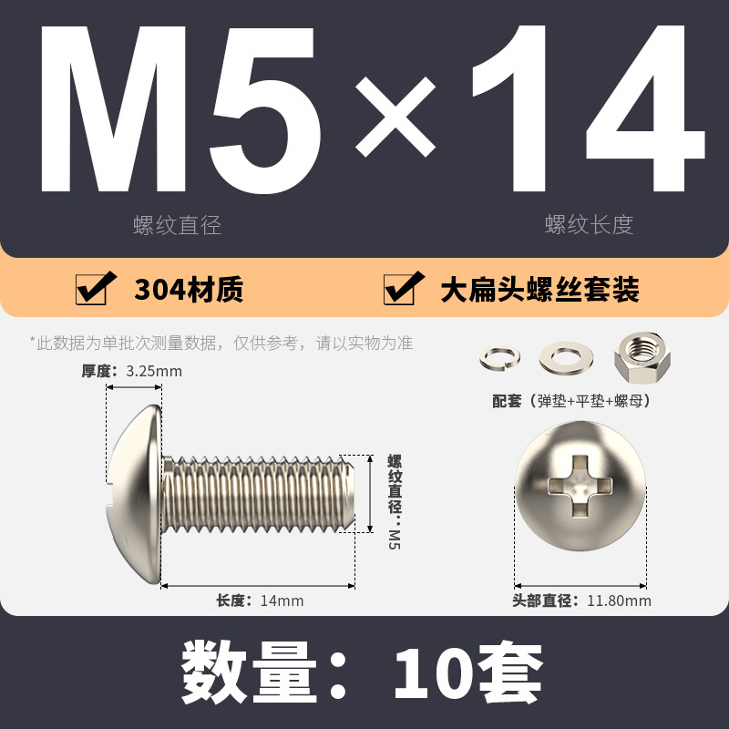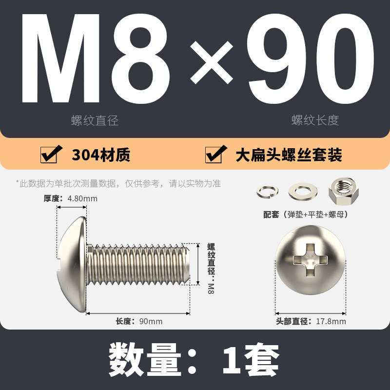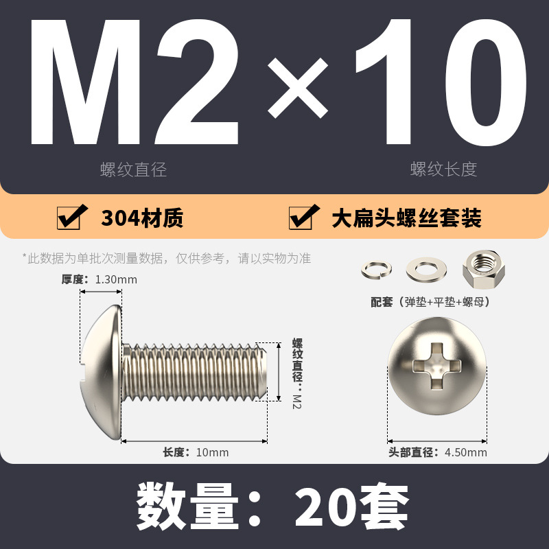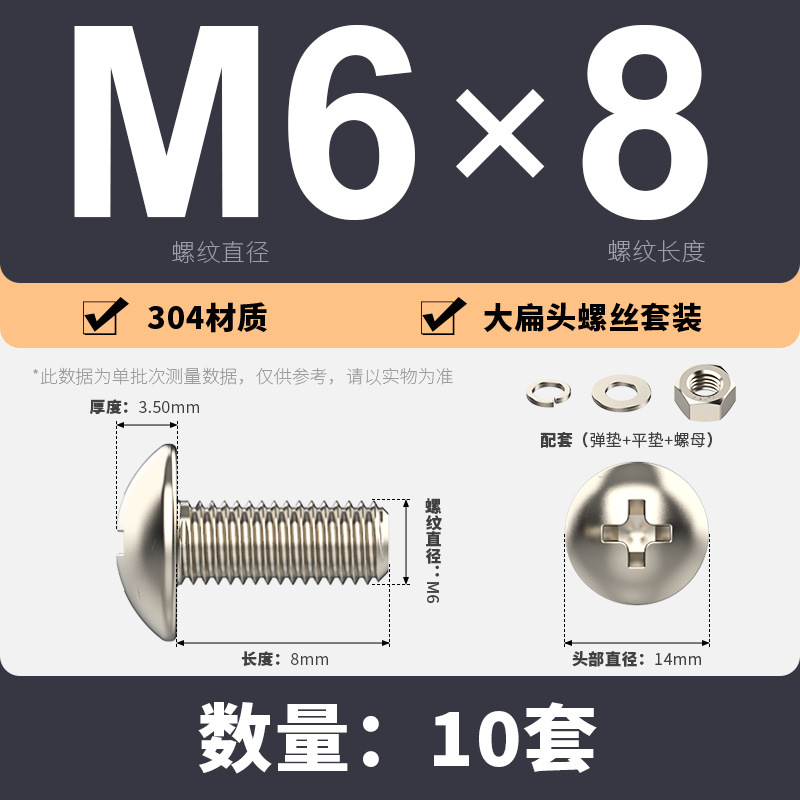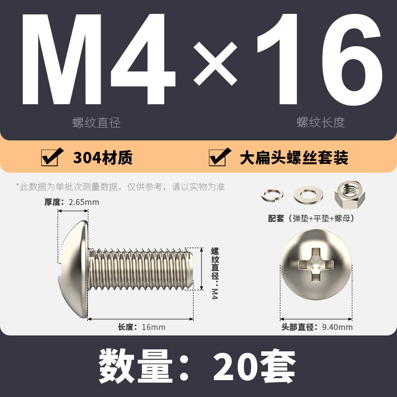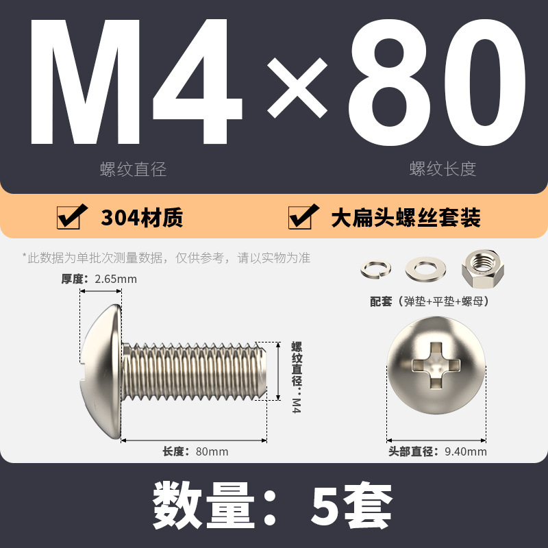 304 스테인레스 스틸 대형 플랫 헤드 필립스 스크류 너트 세트 플랫 패드 버섯 헤드 볼트 조합 완전한 책스토어 가기