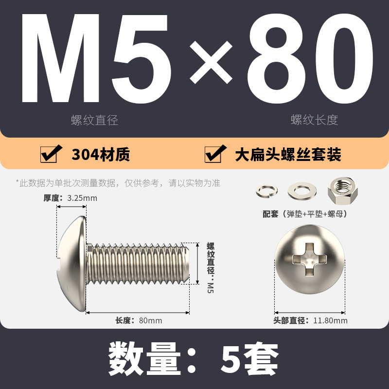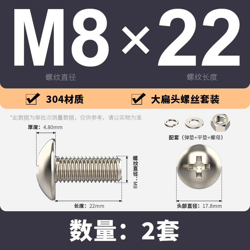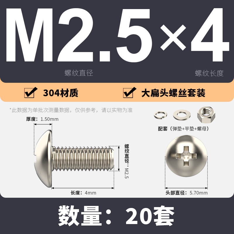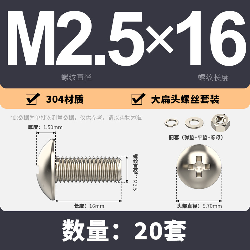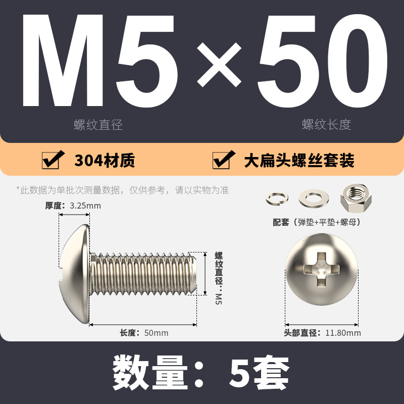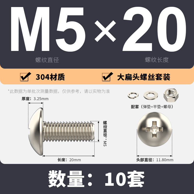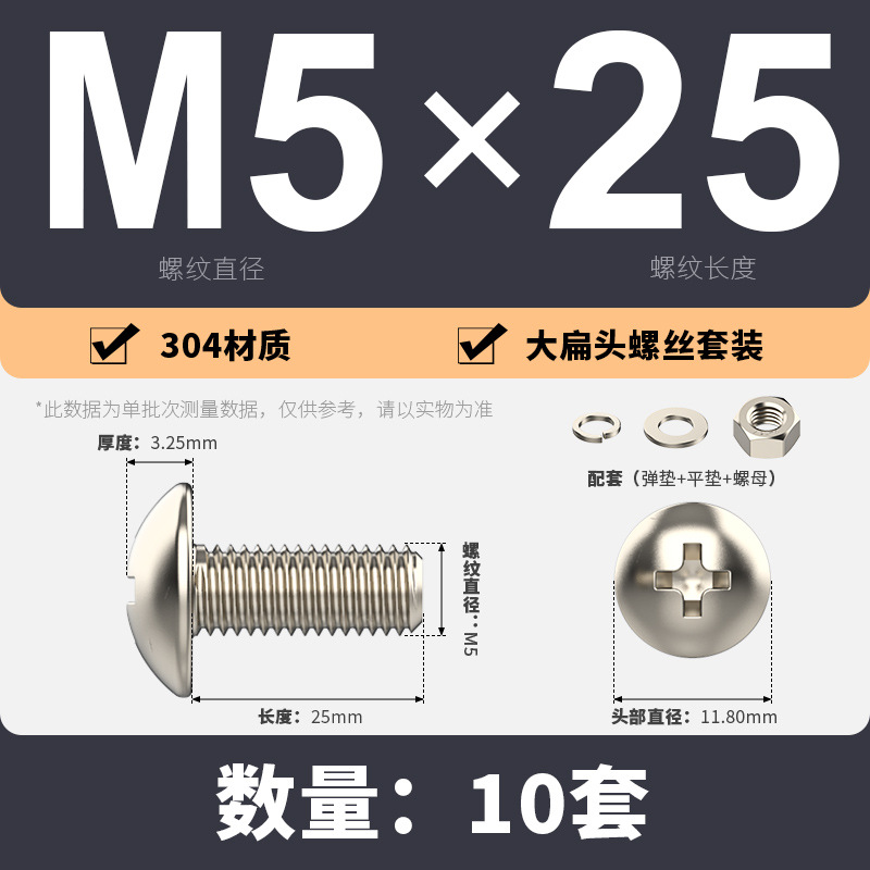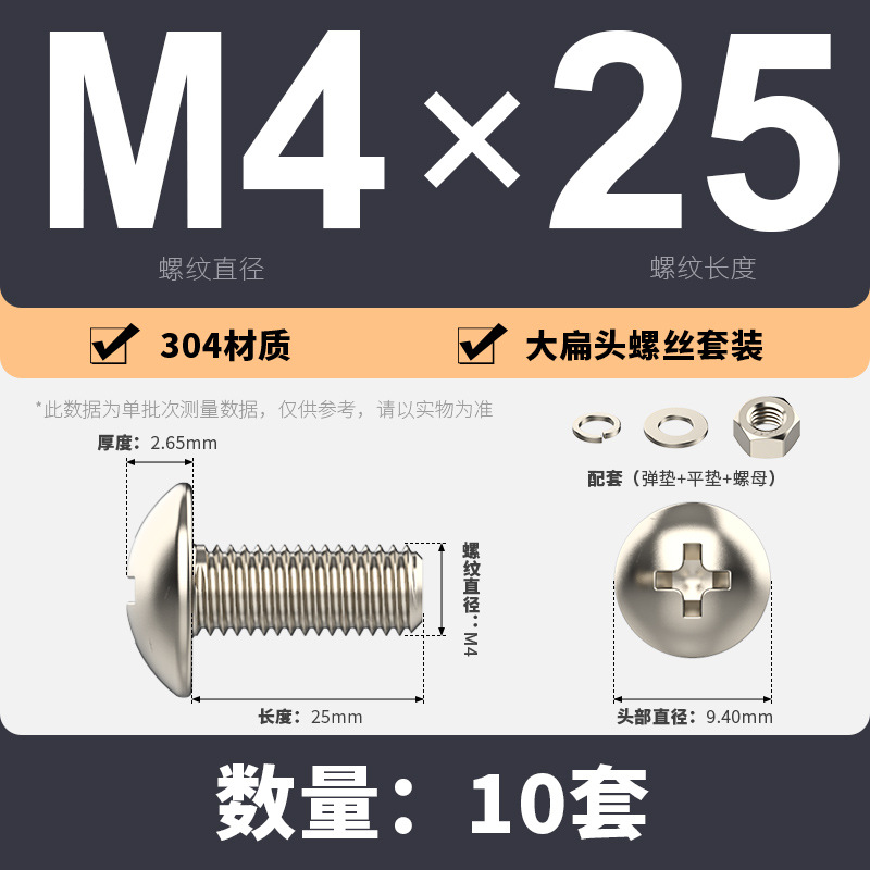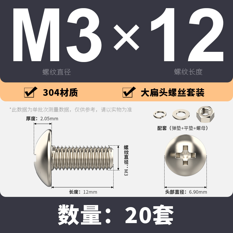 304 스테인레스 스틸 대형 플랫 헤드 필립스 스크류 너트 세트 플랫 패드 버섯 헤드 볼트 조합 완전한 책스토어 가기