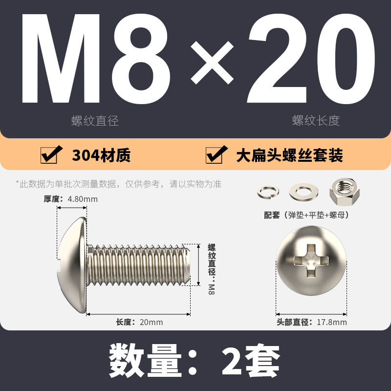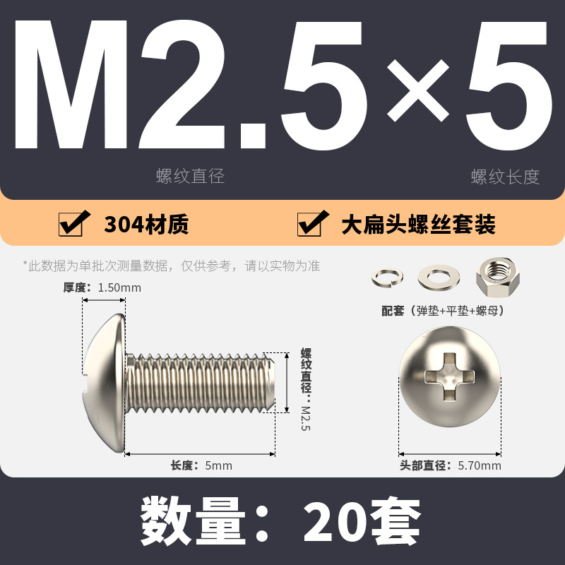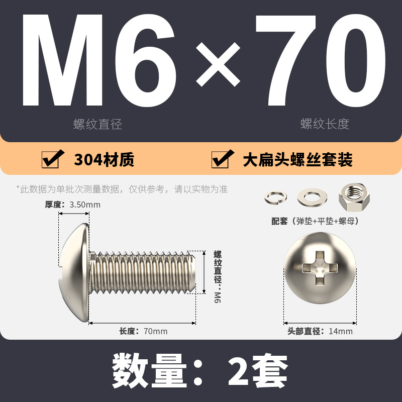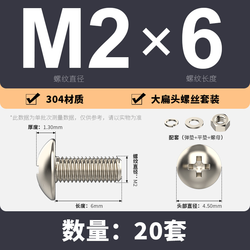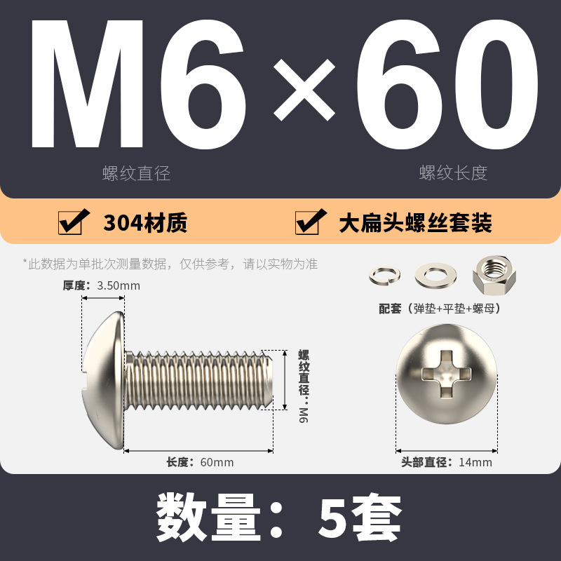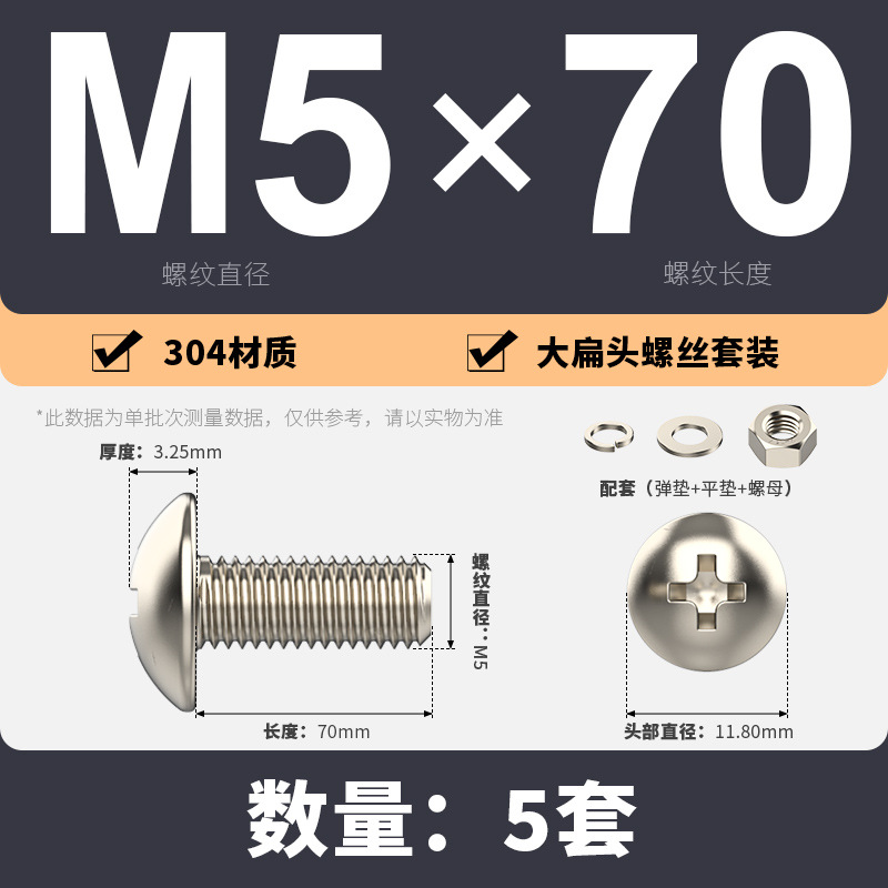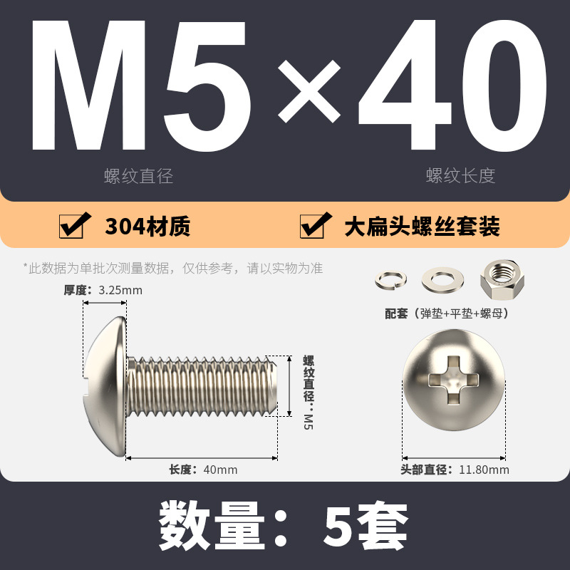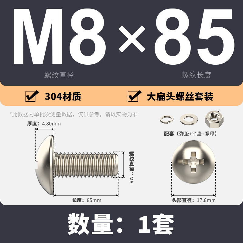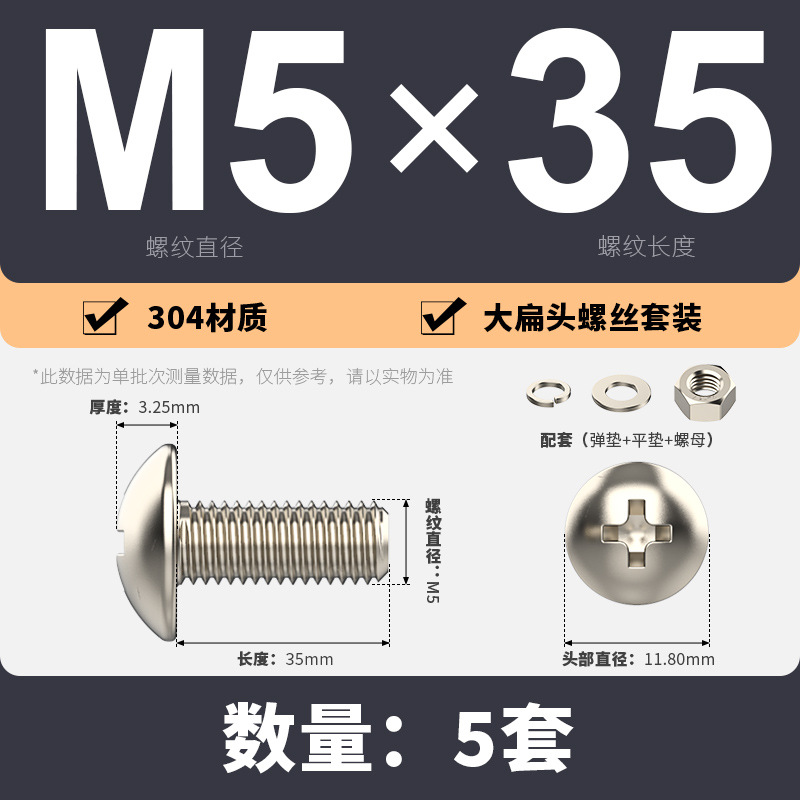 304 스테인레스 스틸 대형 플랫 헤드 필립스 스크류 너트 세트 플랫 패드 버섯 헤드 볼트 조합 완전한 책스토어 가기